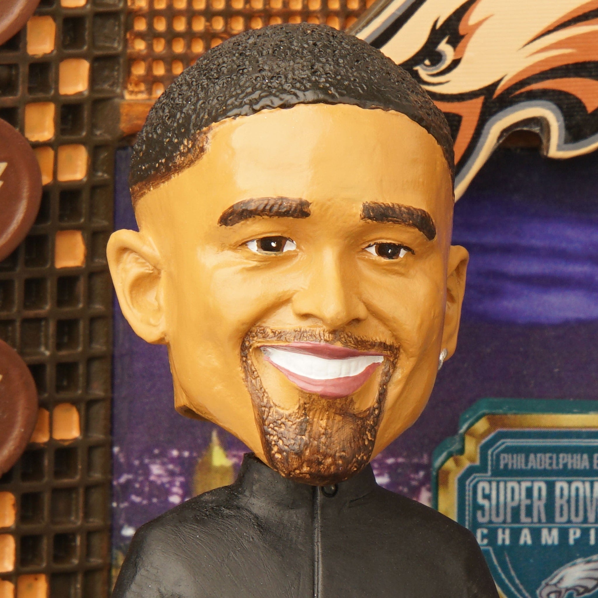 Saquon and Jalen are ready to talk victory! These Eagles are taking over the couch and your collection with this Saquon Barkley & Jalen Hurts Philadelphia Eagles Super Bowl LIX Champions Couch Dual Bobblehead.