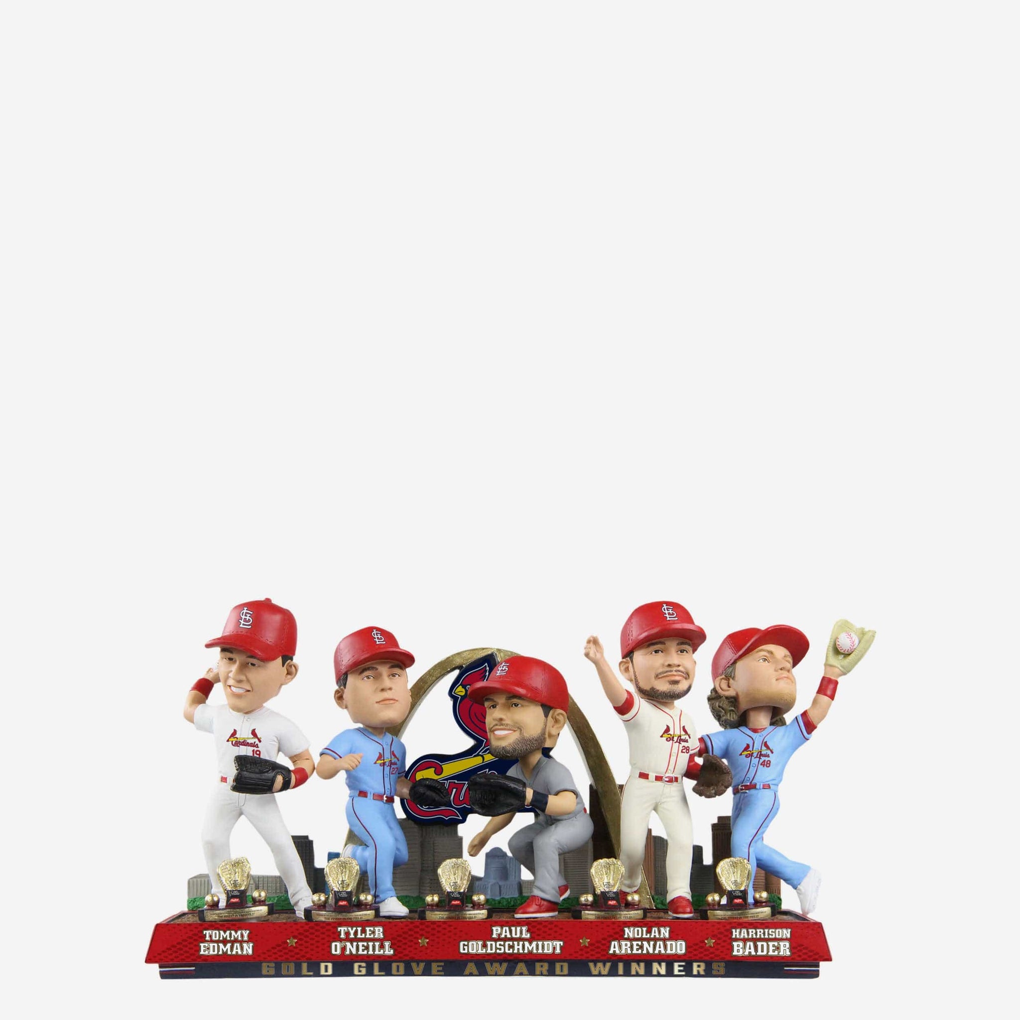 Edman. O'Neill. Goldschmidt. Arenado. Bader. This St. Louis Cardinals 2021 Gold Glove Mini Bobblehead Scene is a quintet of golden goodness in the Gateway City!