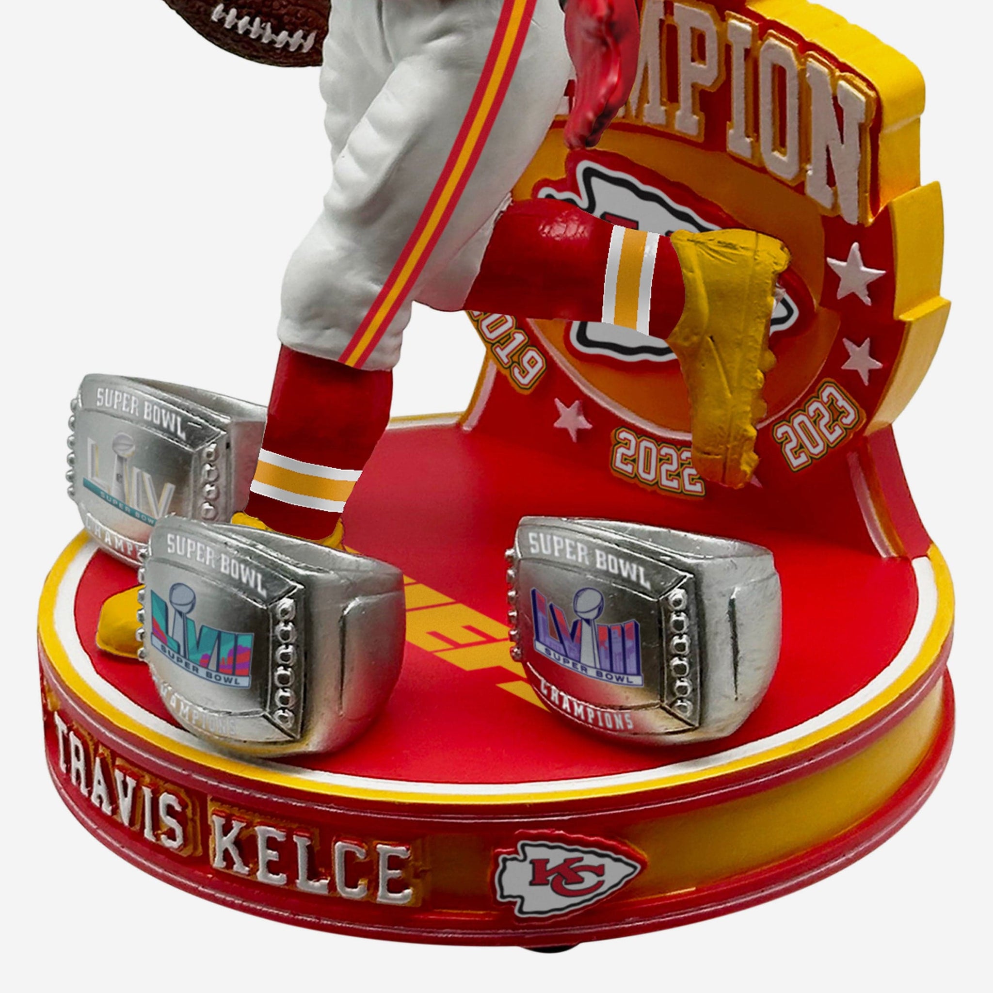 What’s better than winning the Super Bowl? Winning three of them. Even better: Securing this Travis Kelce Kansas City Chiefs 3x Super Bowl Champion Bobblehead for your fancave