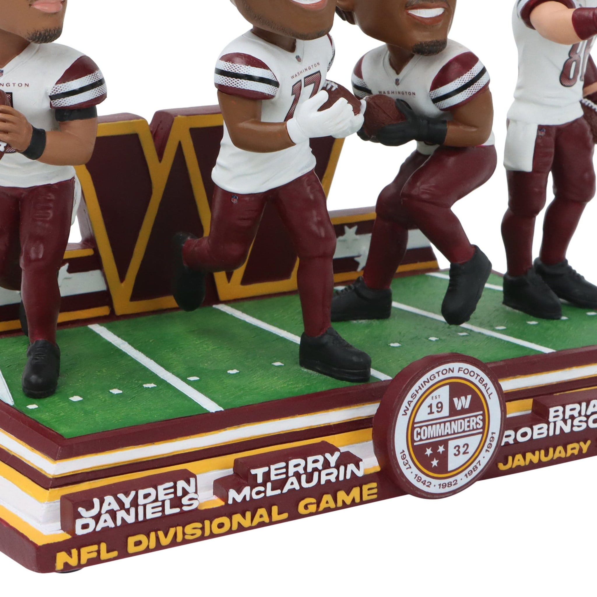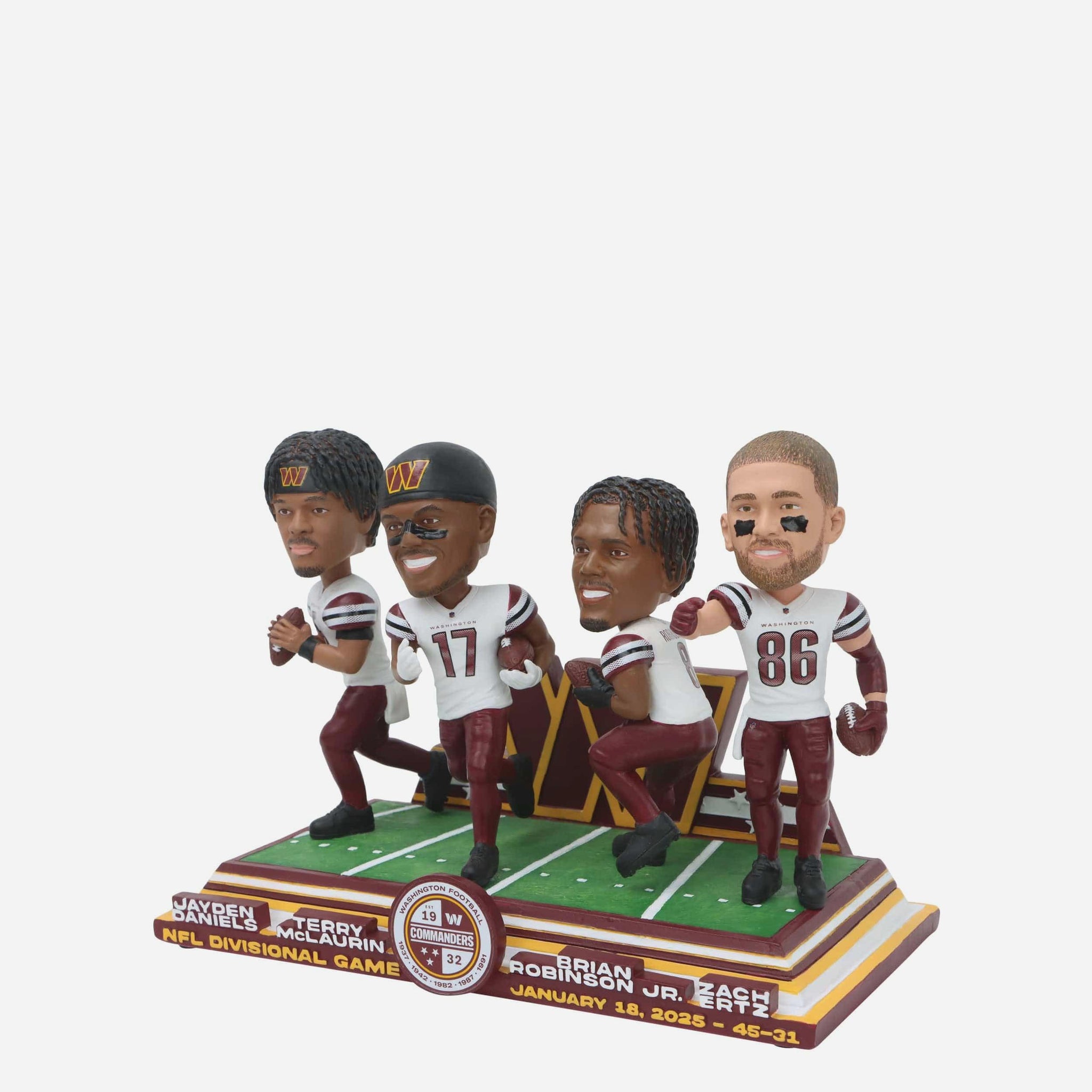 - Portrays Jayden Daniels, Terry McLaurin, Brian Robinson Jr., and Zach Ertz wearing their white gameday uniforms in action poses, ready to celebrate victory