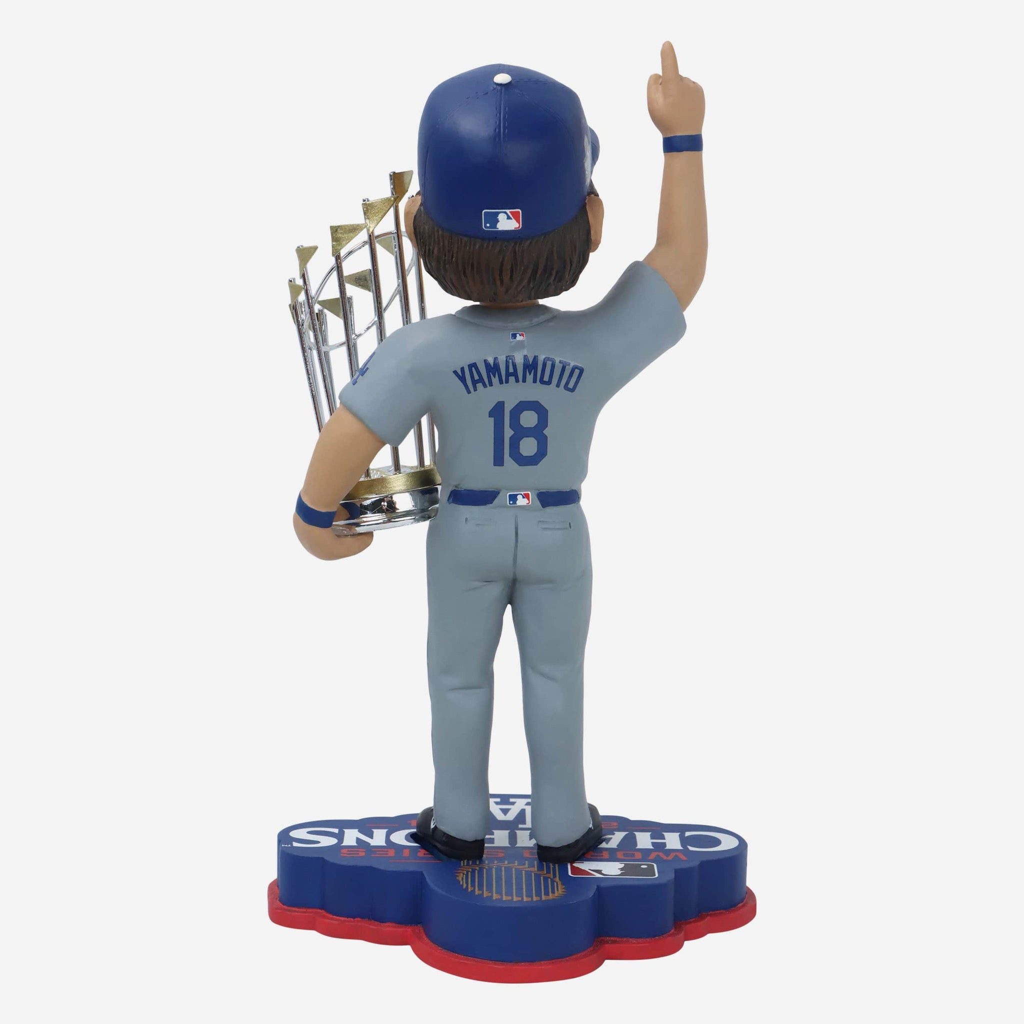 - Portrays Yamamoto posing in his white gameday uniform and holding World Series championship trophy, because you've gotta show off the hardware
