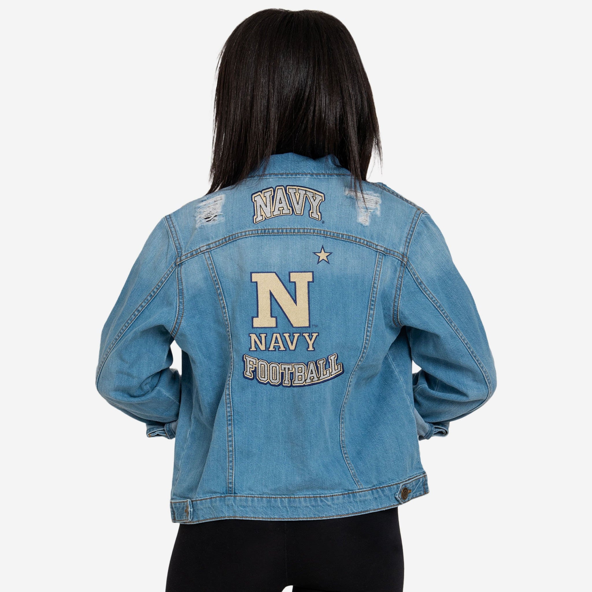 The Navy Midshipmen Women's Denim Days Jacket is the ultimate wild card of your wardrobe. Pair it with a dress? Sure. Wear it over a t-shirt? Why not? Show it off at a summer concert? Go for it. Rock it to the tailgate when the weather gets cool? You can do that, too. The only limits of this jacket are the ones you place on it.