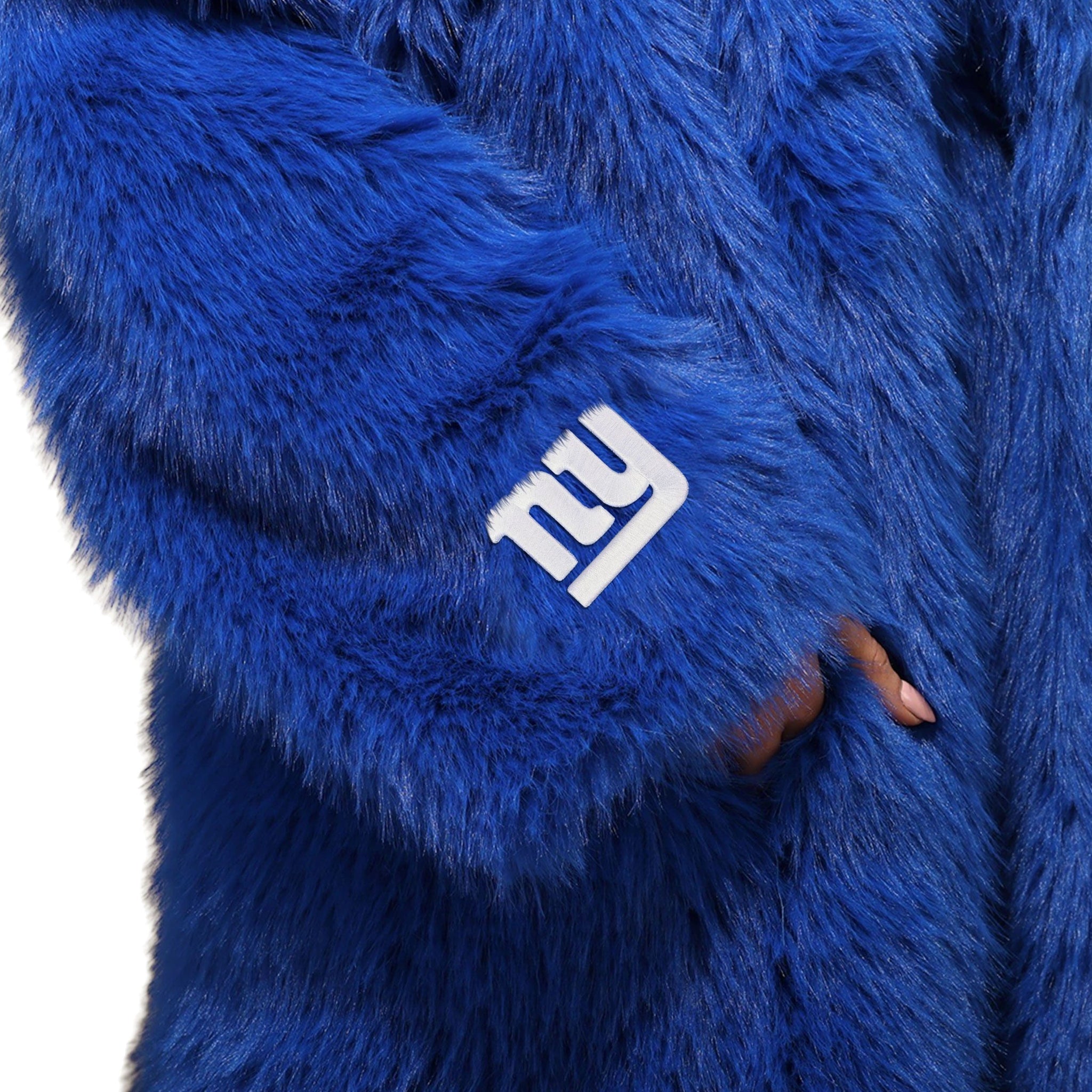 Stay warm, look sharp, and rep your squad with the New York Giants Faux Fur Long Jacket. Made from ultra-soft faux fur with an all-over team-colored design and bold embroidered logos, this jacket brings game day glam and cozy comfort together in one statement piece.