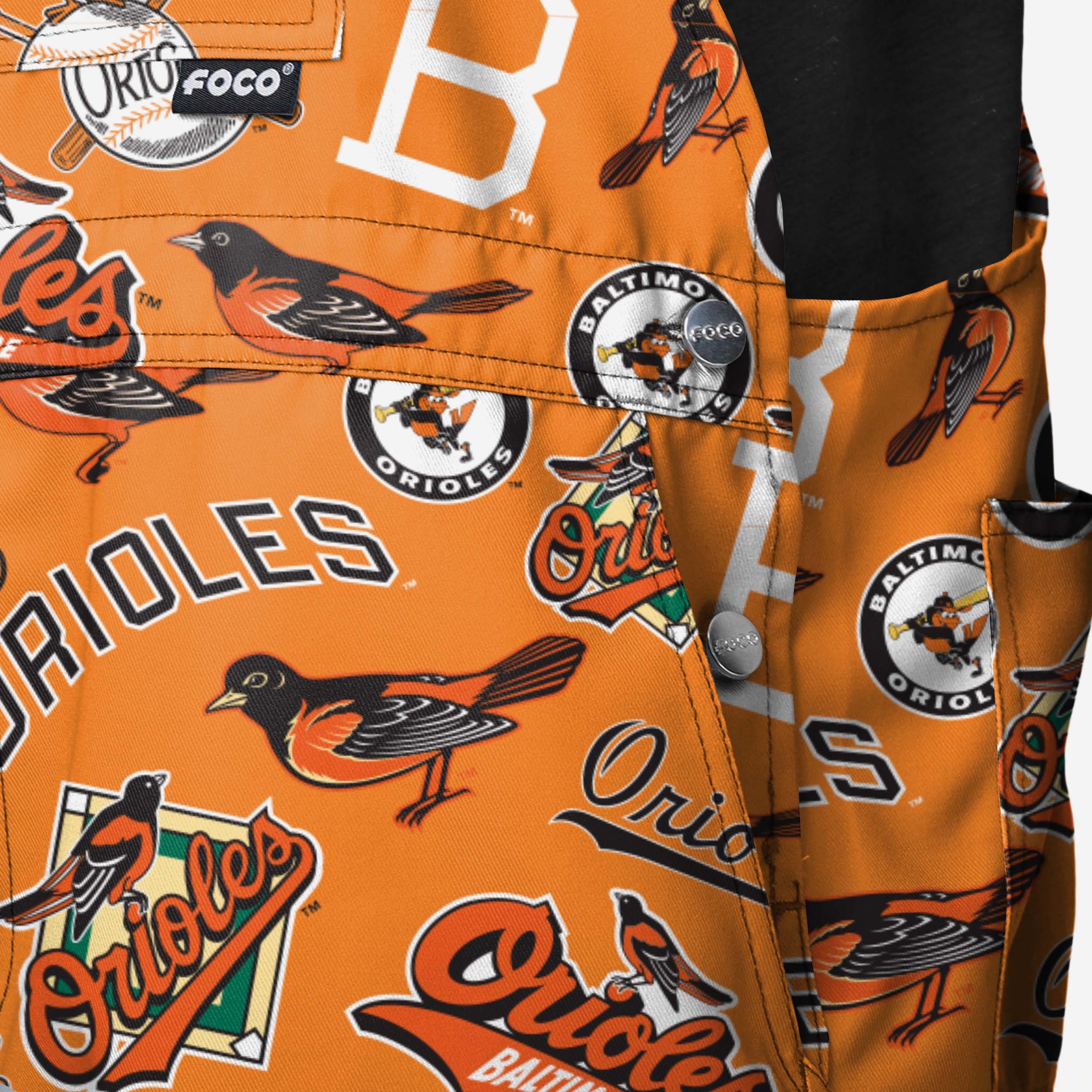 - All-over team-colored design: These shortalls are covered in the official Baltimore Orioles colors, so you can show your team spirit with pride.