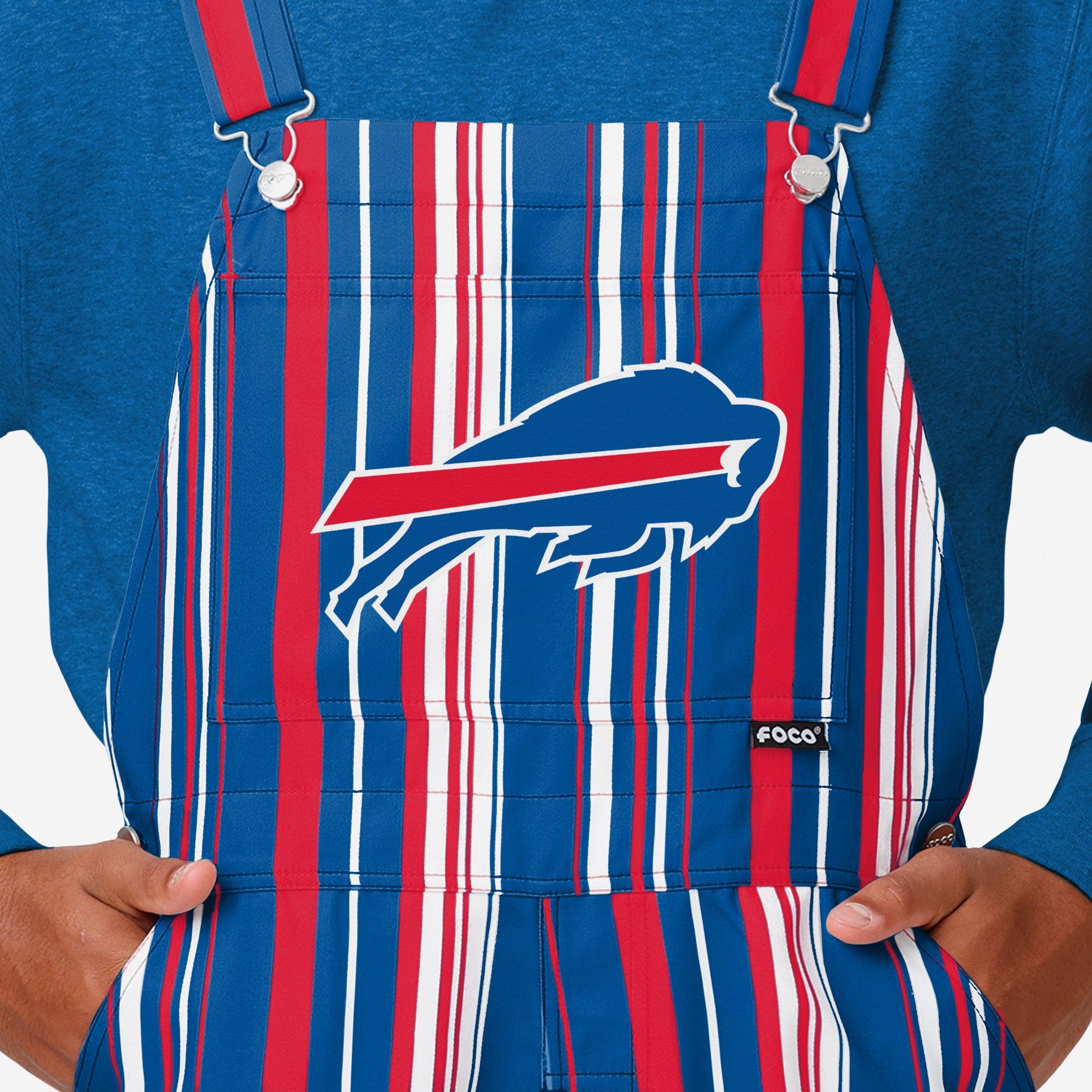 - All-over team-colored design: These overalls are covered in the official Buffalo Bills colors, so you can show your team spirit with pride.