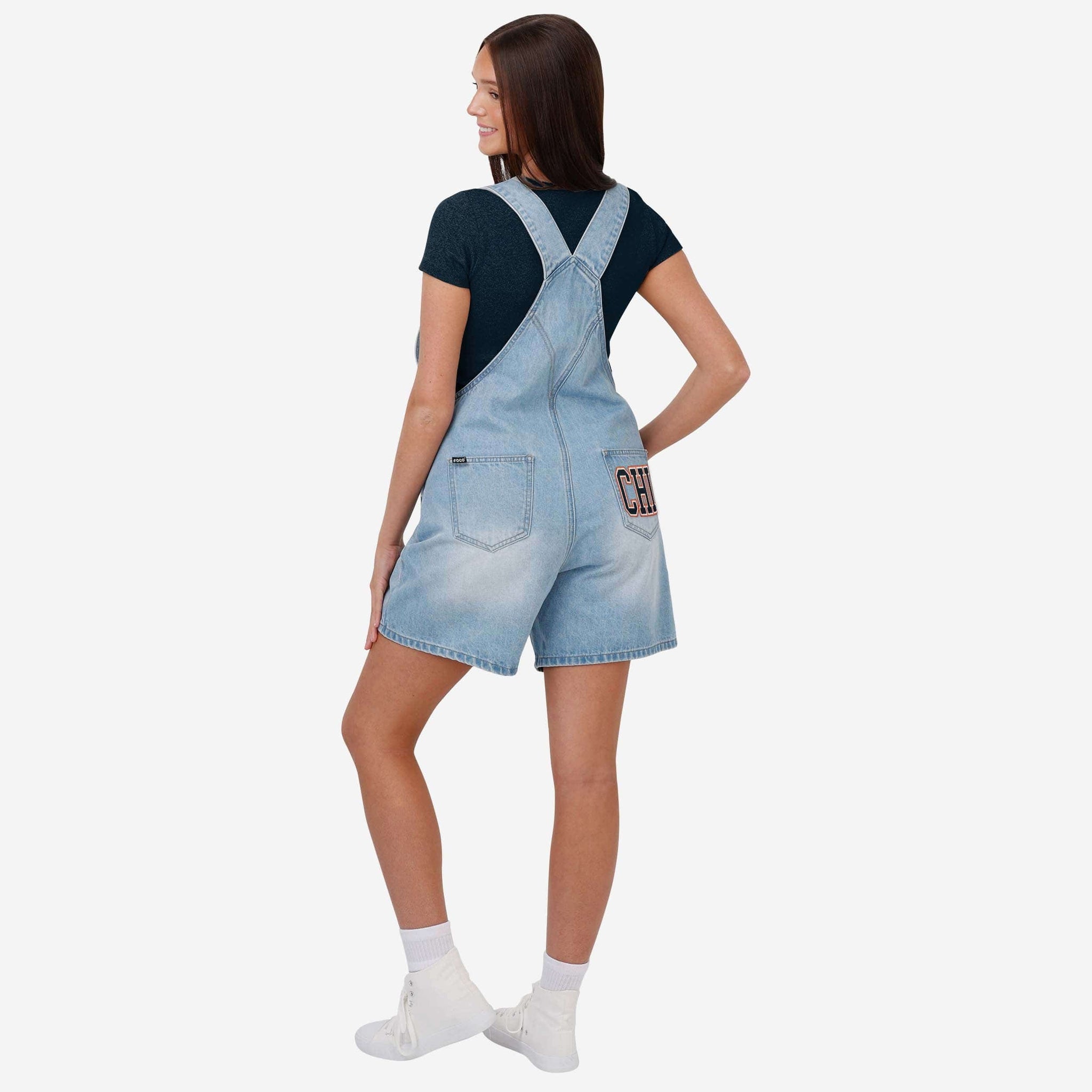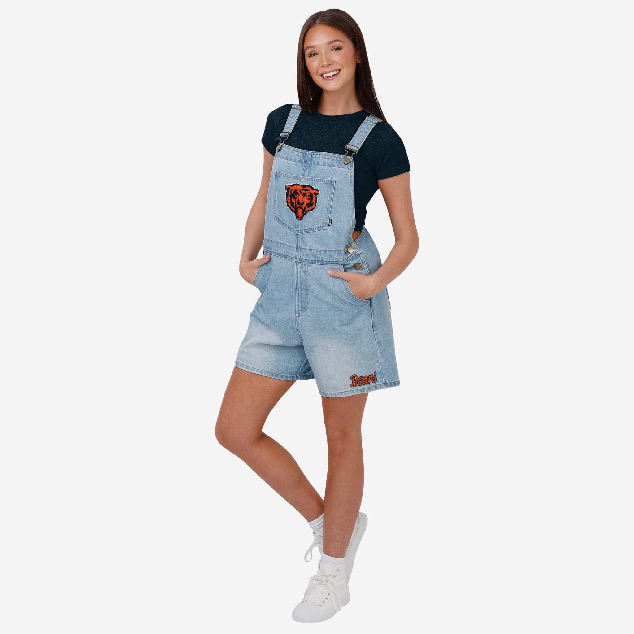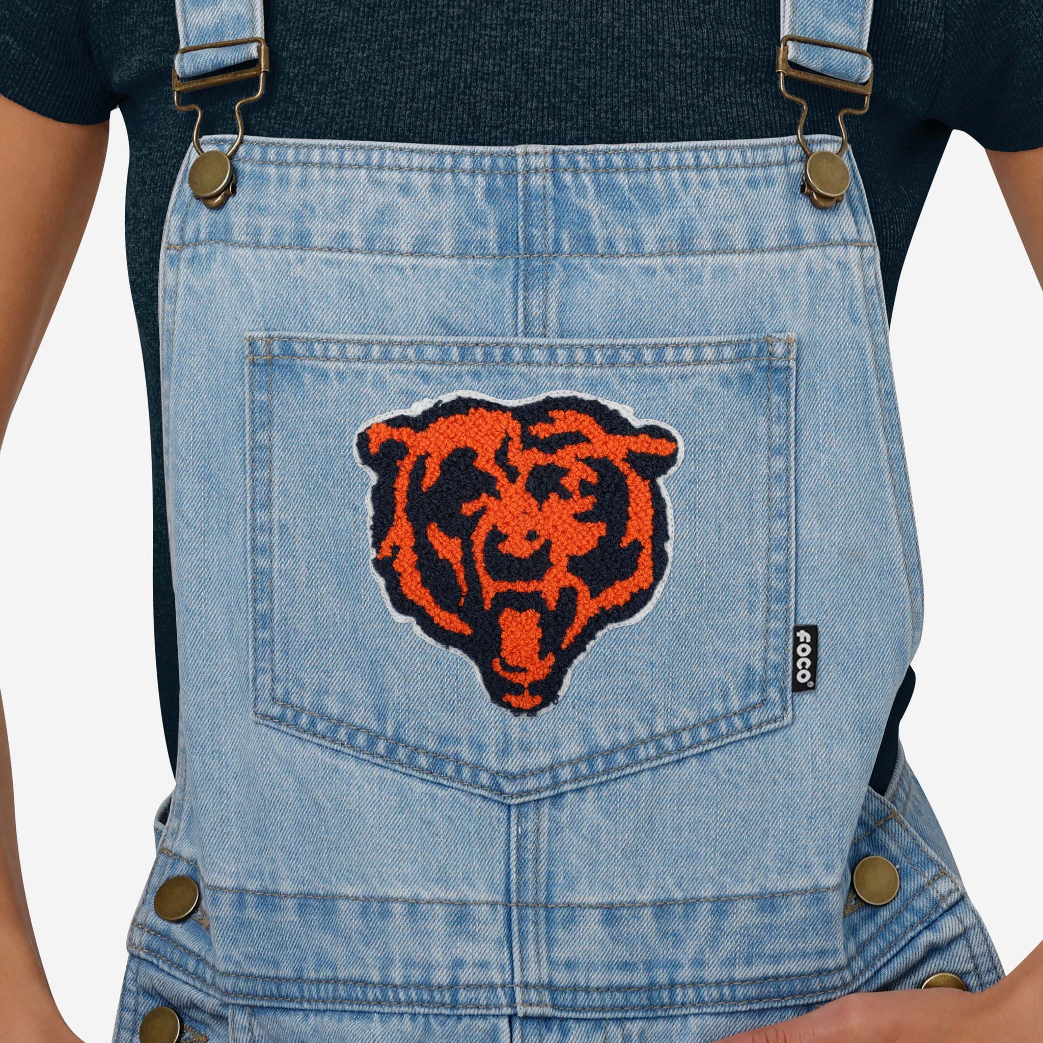 Chicago Bears Womens Big Logo Denim Bib Shortalls FOCO XS - FOCO.com