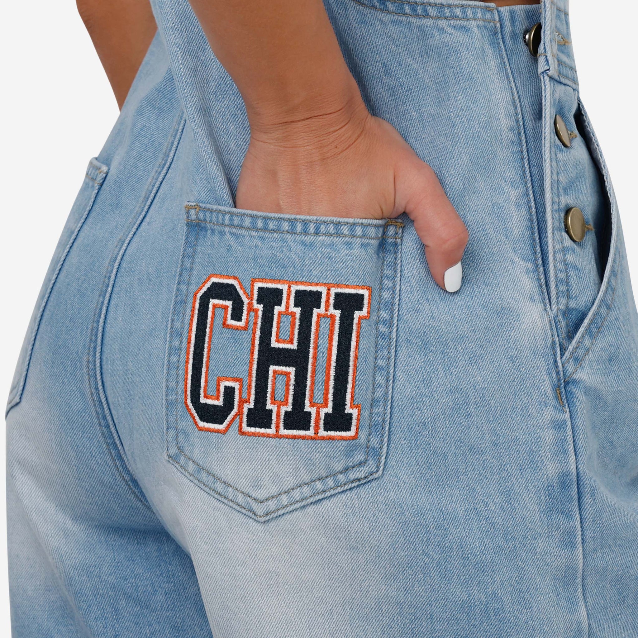 Chicago Bears Womens Big Logo Denim Bib Shortalls
