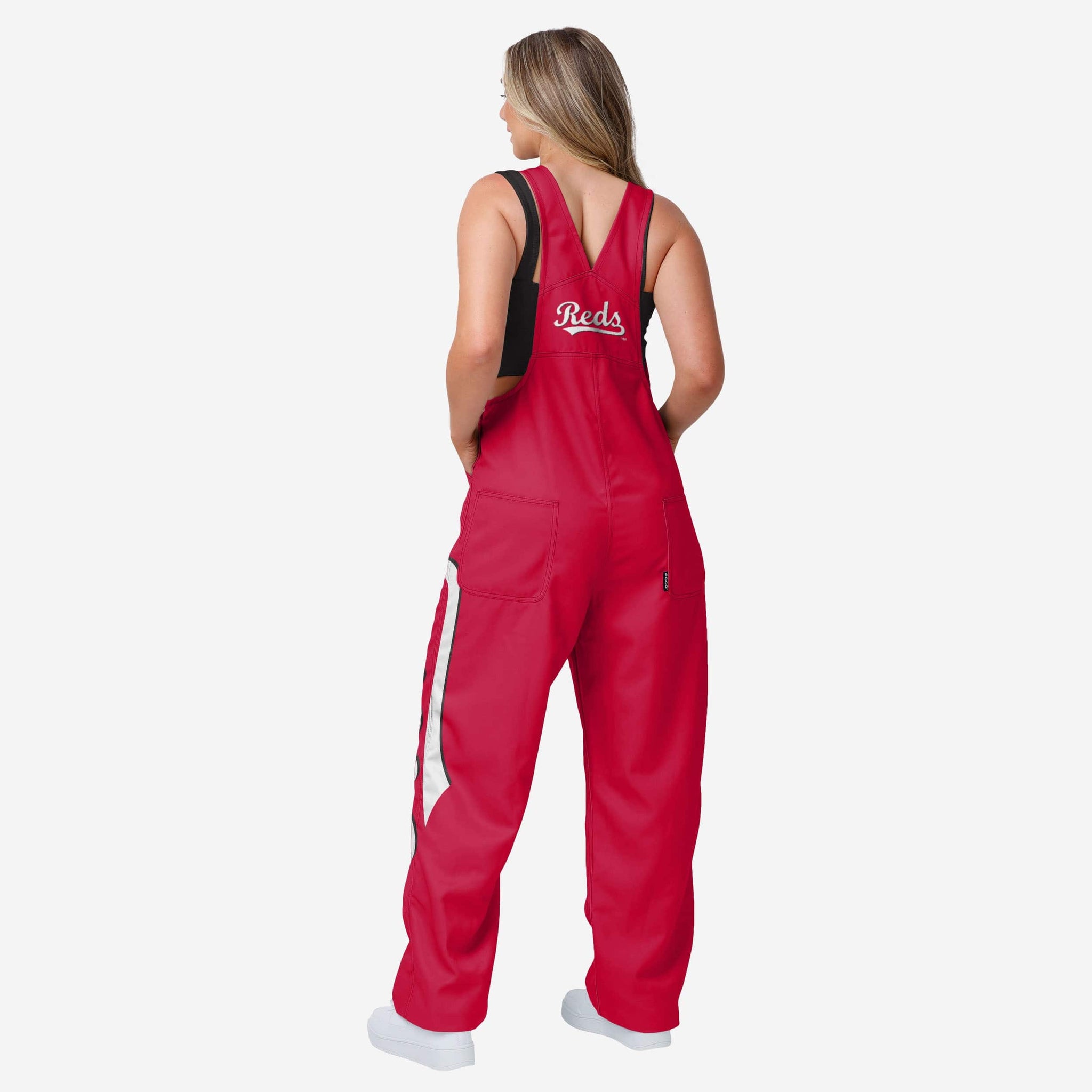 Show your team spirit in these stylish and comfortable Cincinnati Reds Women's Big Logo Bib Overalls. With their all-over team-colored design and bold team logo display, these overalls are the perfect way to show your support for the Cincinnati Reds while covering yourself in your team colors and logos that would make any mascot jealous.