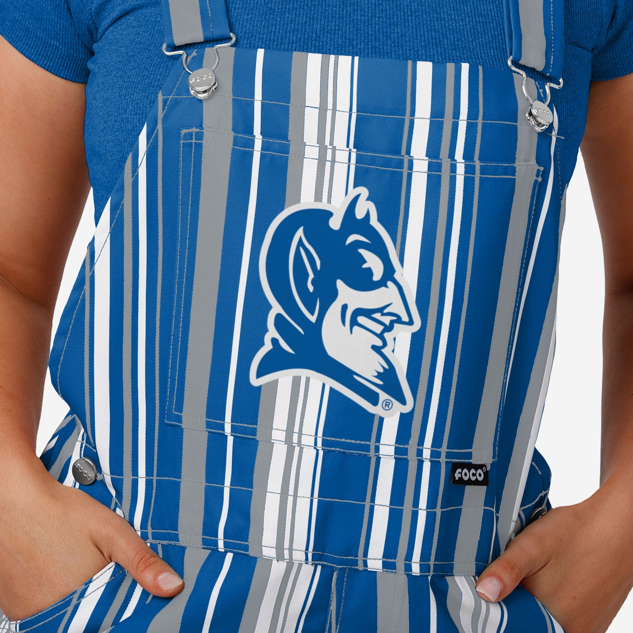 - All-over team-colored design: These overalls are covered in the official Duke Blue Devils colors, so you can show your team spirit with pride.