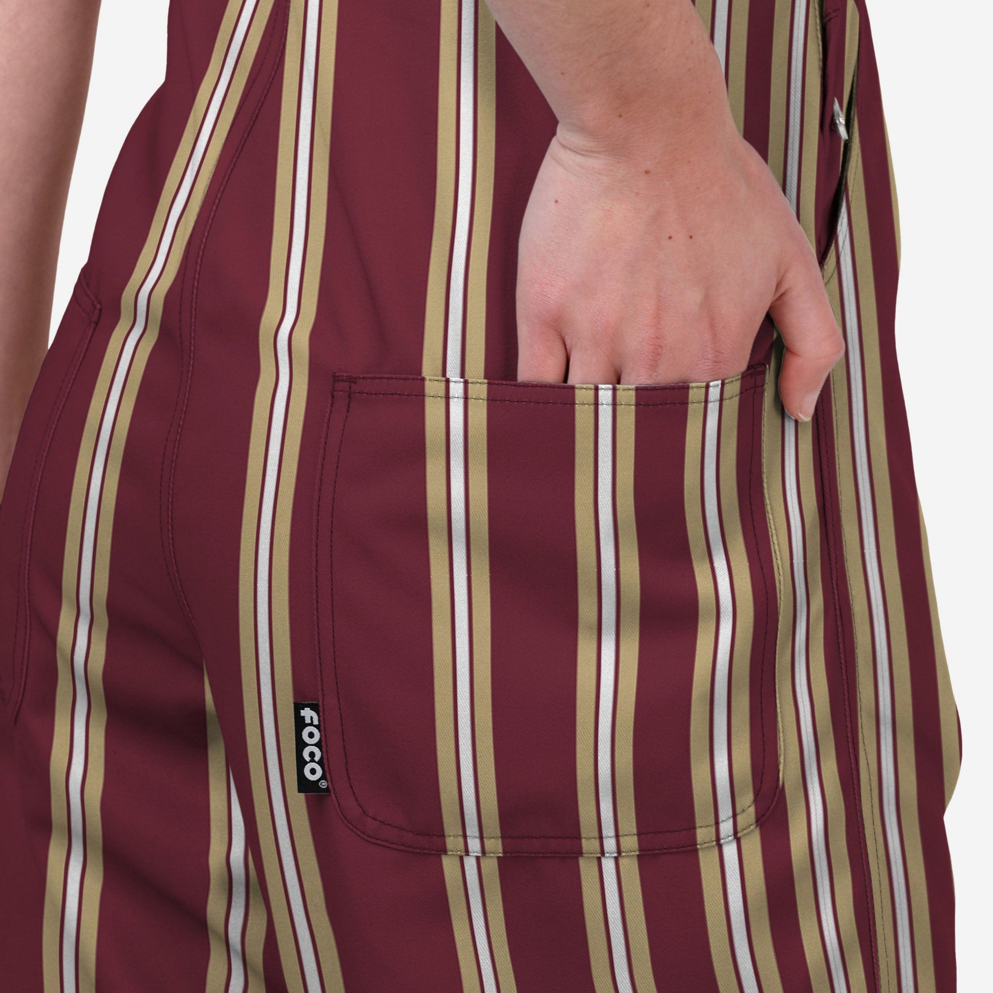 Show your team spirit in these stylish and comfortable Florida State Seminoles Womens Sideline Spirit Overalls. With their all-over team-colored design and bold team logo displays, these Overalls are the perfect way to show your support for the Florida State Seminoles while showing off some striped style that will have you ready for everything from campus strolls to sideline cheers.