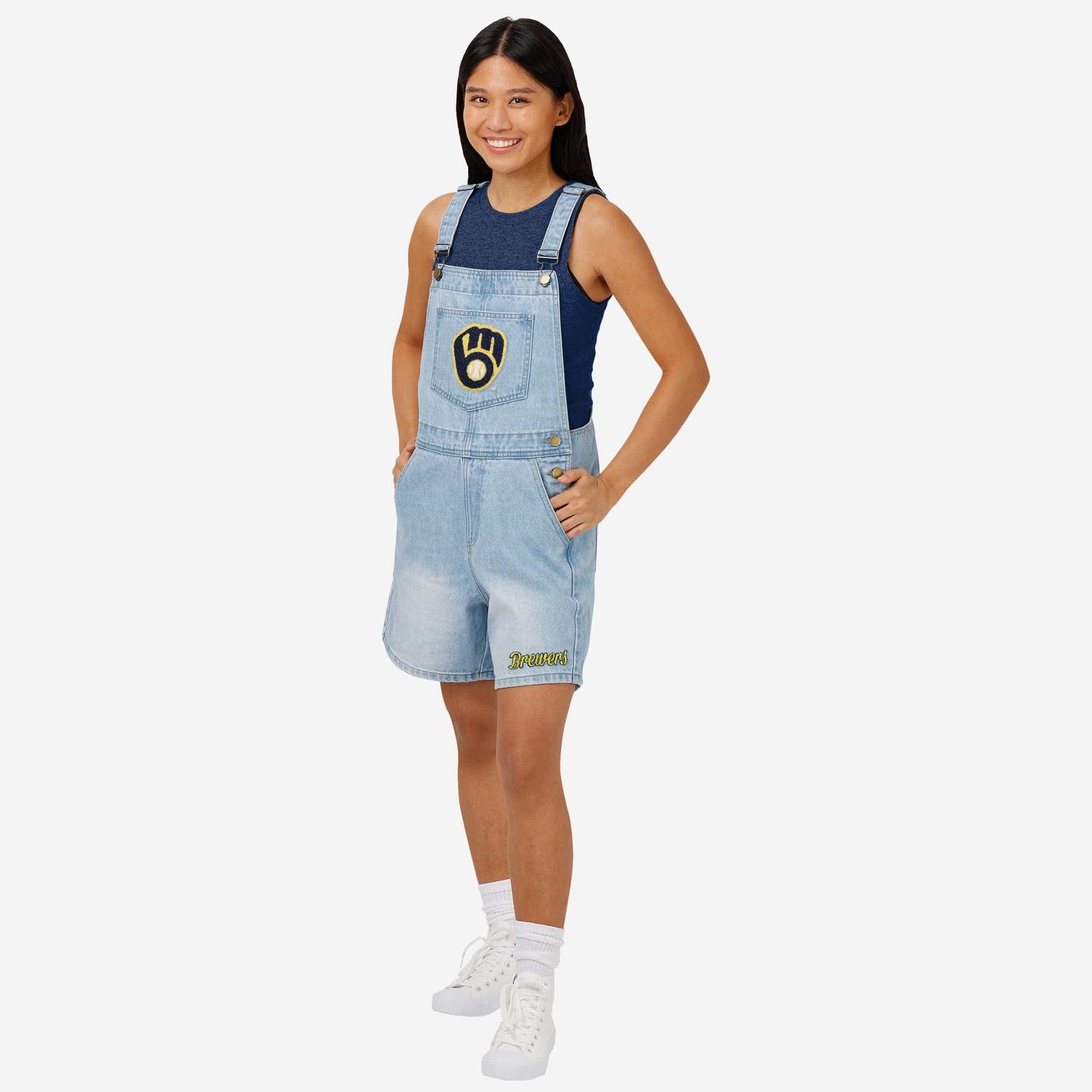 Show your team spirit in these stylish and comfortable Milwaukee Brewers Womens Big Logo Denim Shortalls. With their all-over denim design and bold team logo patch display, these shortalls are the perfect way to show your support for the Milwaukee Brewers!