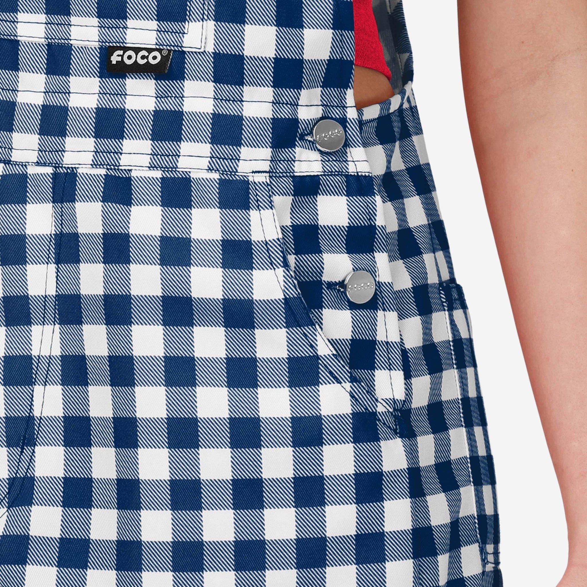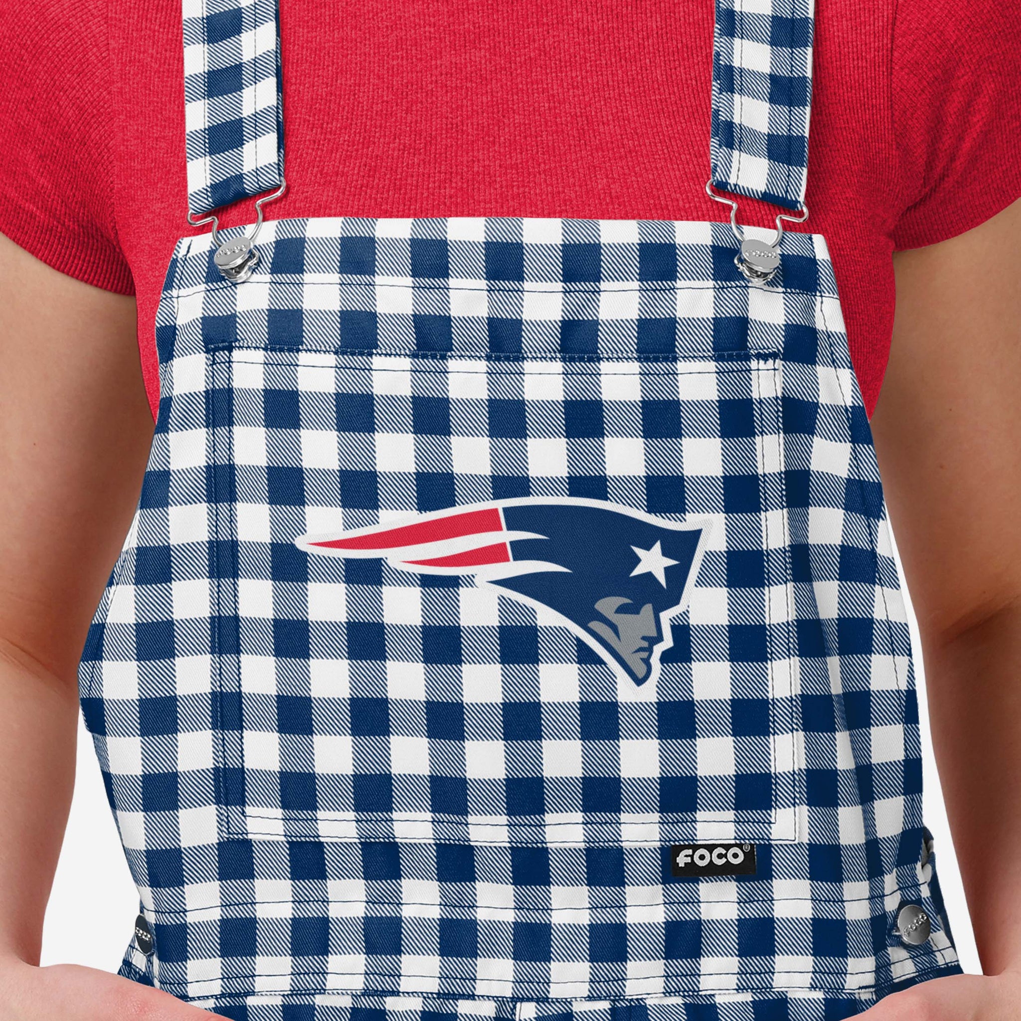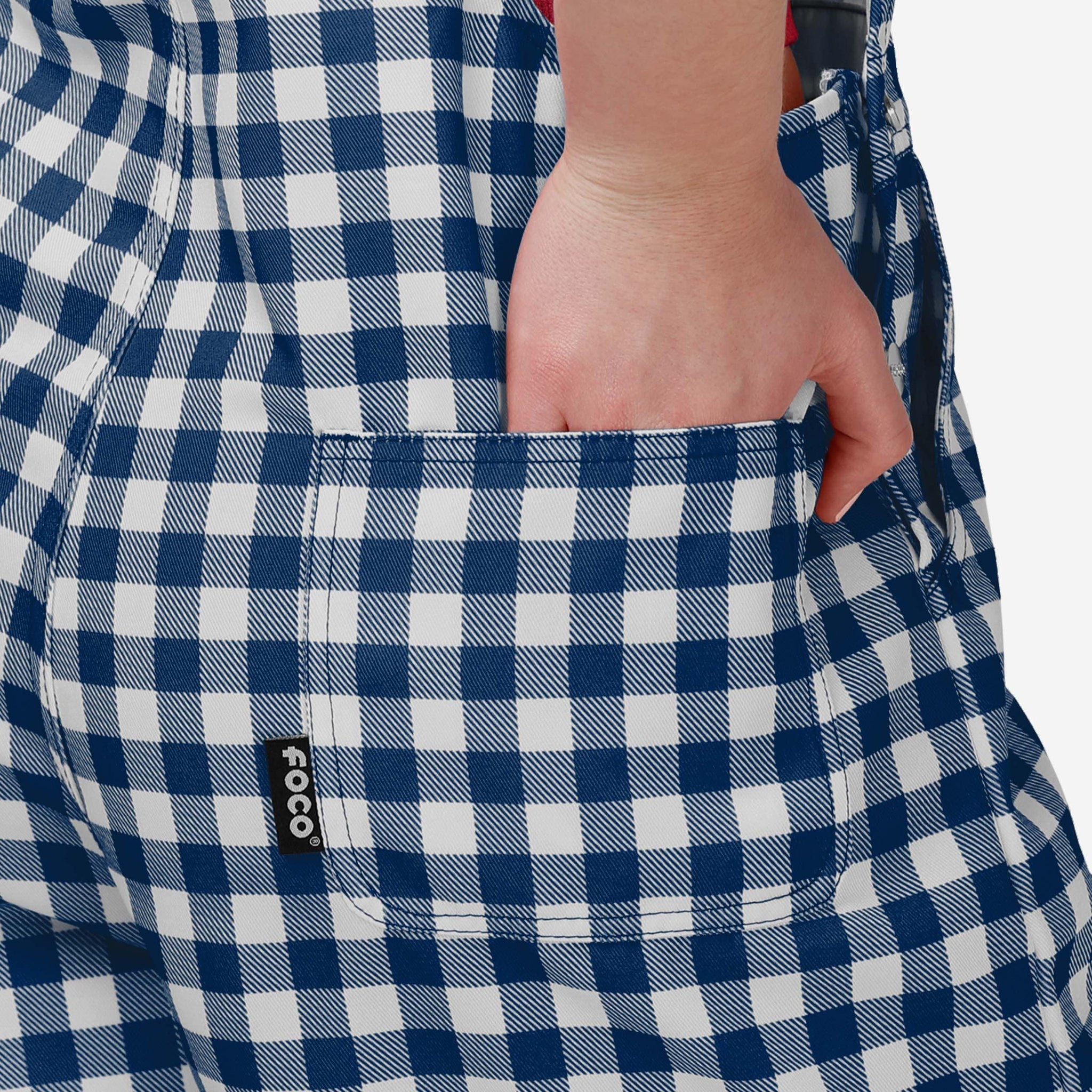 Show your team spirit in these stylish and comfortable New England Patriots Women's Gingham Check Bib Shortalls. With their all-over team-colored design and bold team logo display, these shortalls are the perfect way to show your support for the New England Patriots while showing off some gingham check fashion for a rustic, throwback feel.