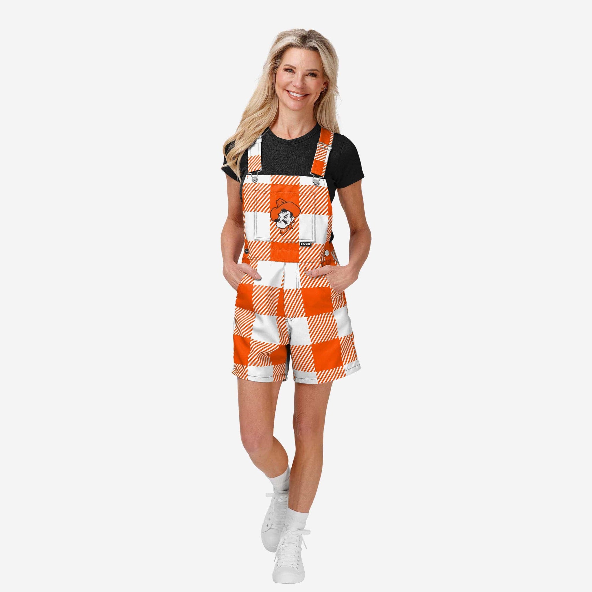 Oklahoma State Cowboys Womens Plaid Bib Shortalls FOCO - FOCO.com