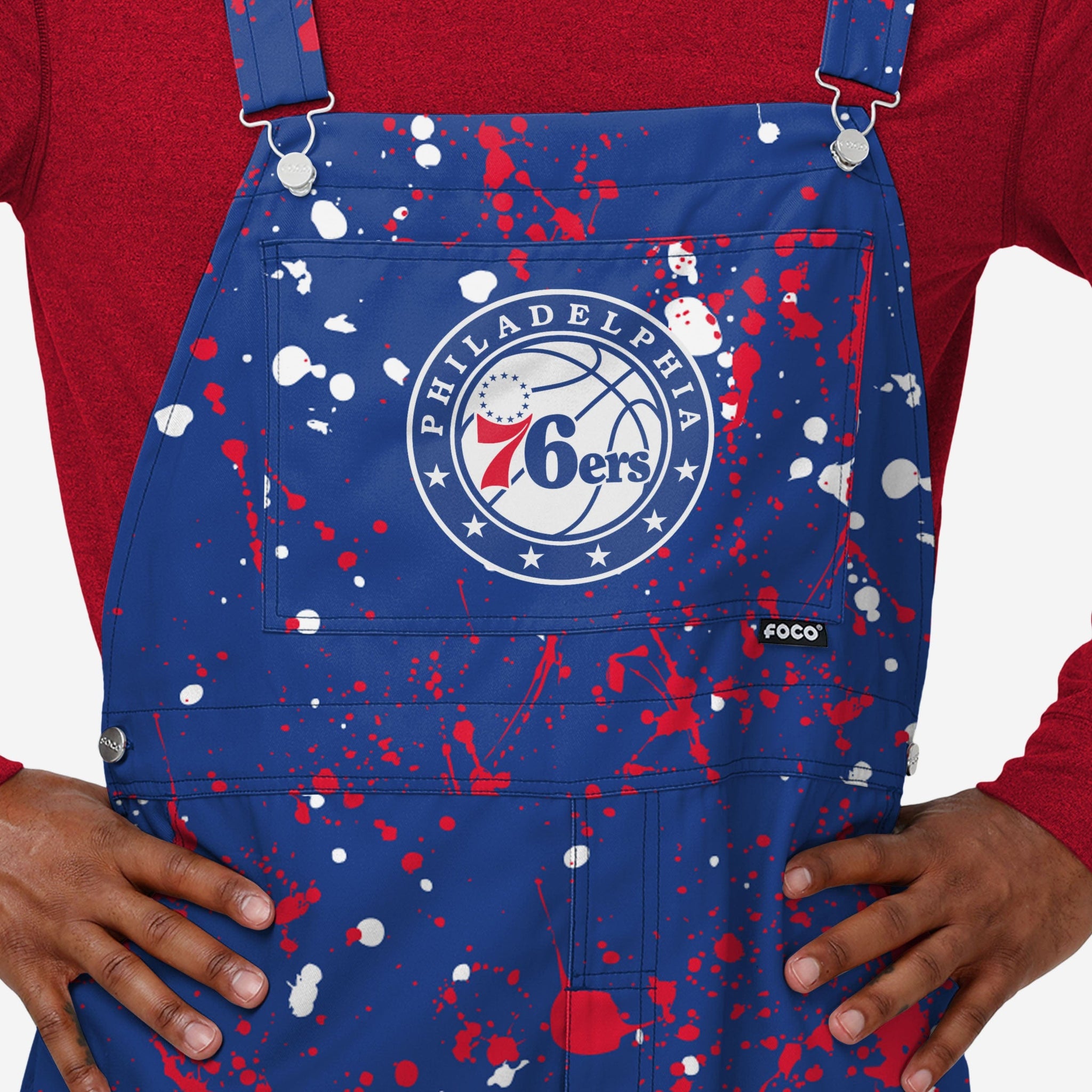 Show your team spirit in these stylish and comfortable Philadelphia 76ers Men's Paint Splatter Bib Overalls. With their all-over team-colored design and bold team logo display, these overalls are the perfect way to show your support for the Philadelphia 76ers while reminding everyone that your fandom is a masterpiece that even history’s greatest artists would bask in the glory of.