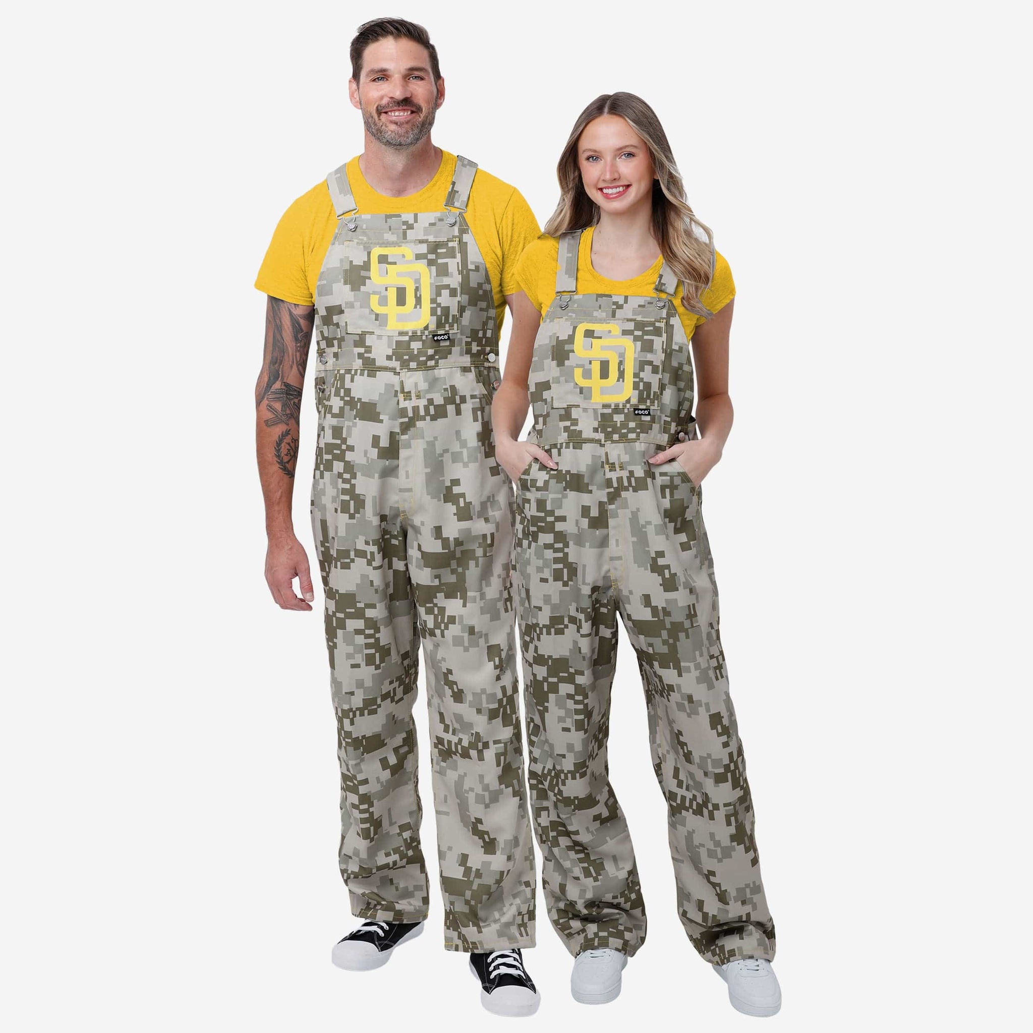 Show your team spirit in these stylish and comfortable San Diego Padres Women's Digital Camo Thematic Bib Overalls. With their all-over team-colored design and bold team logo display, these overalls are the perfect way to show your support for the San Diego Padres while showing off some team-specific style that will make sure your fan fashion stands above the rest at home, on the go, at the game, or wherever life takes you.