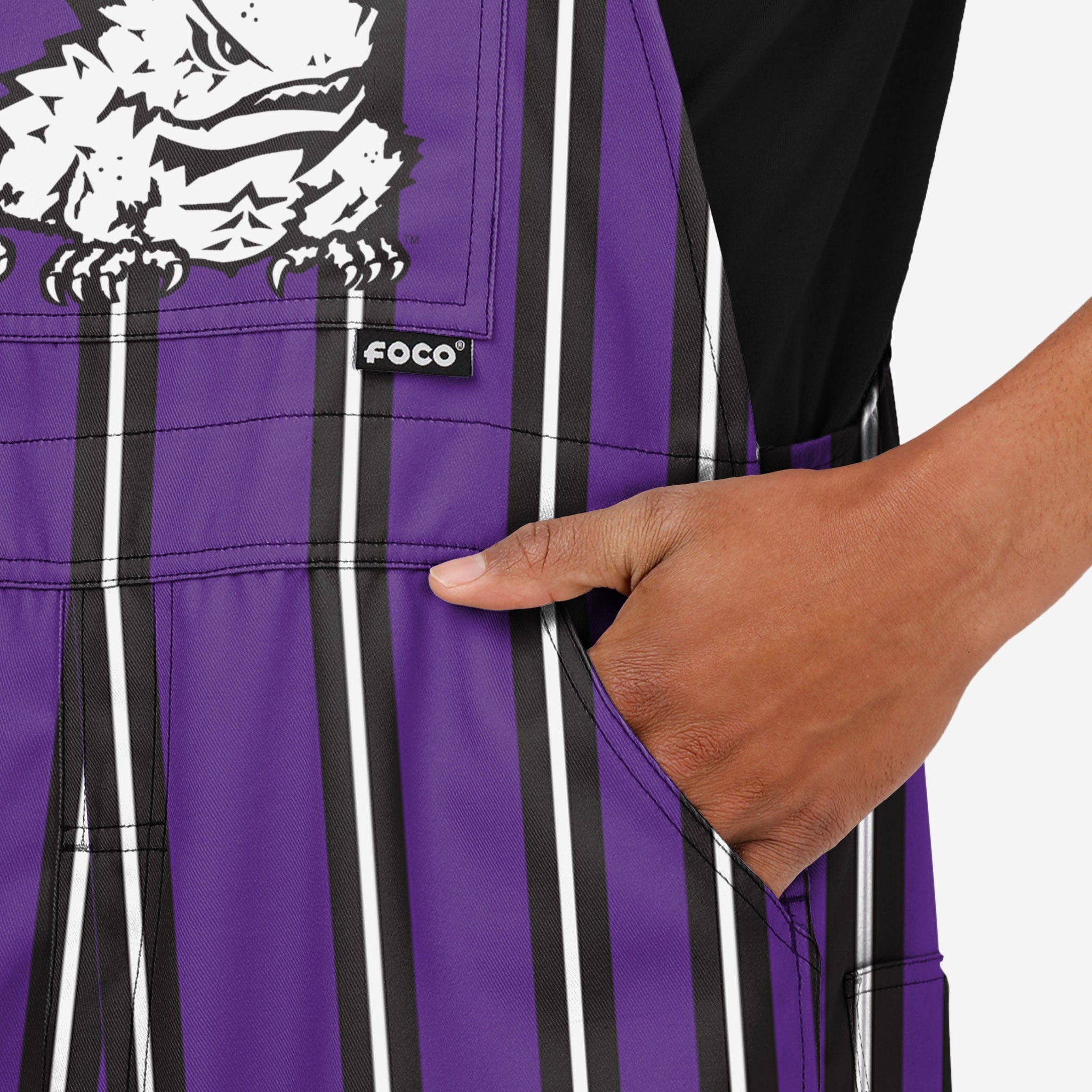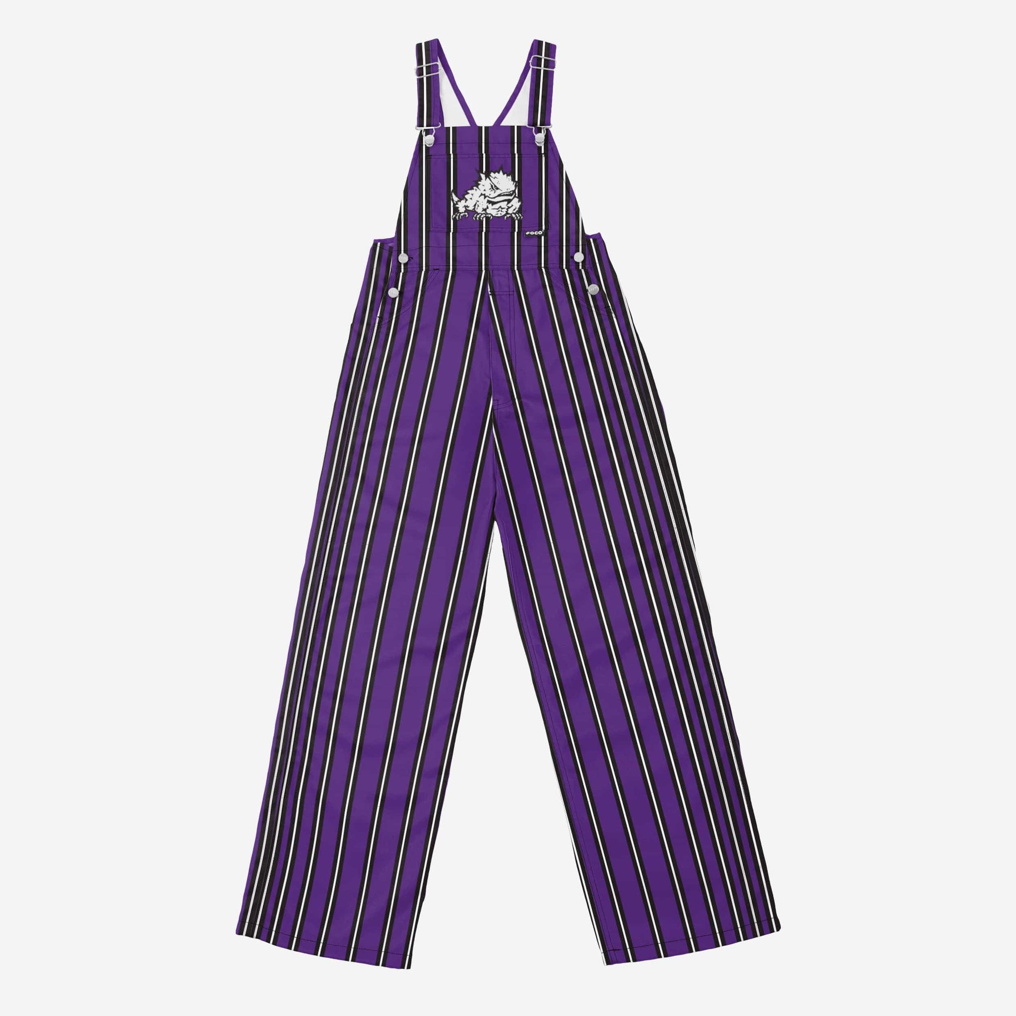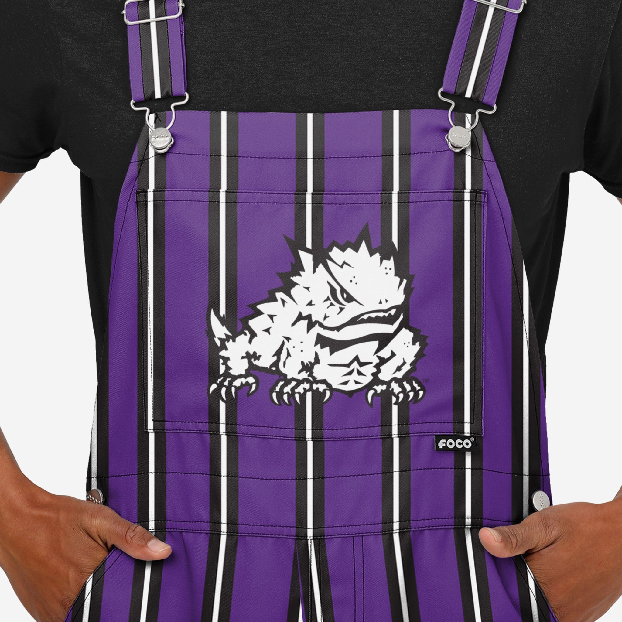 Show your team spirit in these stylish and comfortable TCU Horned Frogs Mens Sideline Spirit Overalls. With their all-over team-colored design and bold team logo displays, these Overalls are the perfect way to show your support for the TCU Horned Frogs while showing off some striped style that will have you ready for everything from campus strolls to sideline cheers.