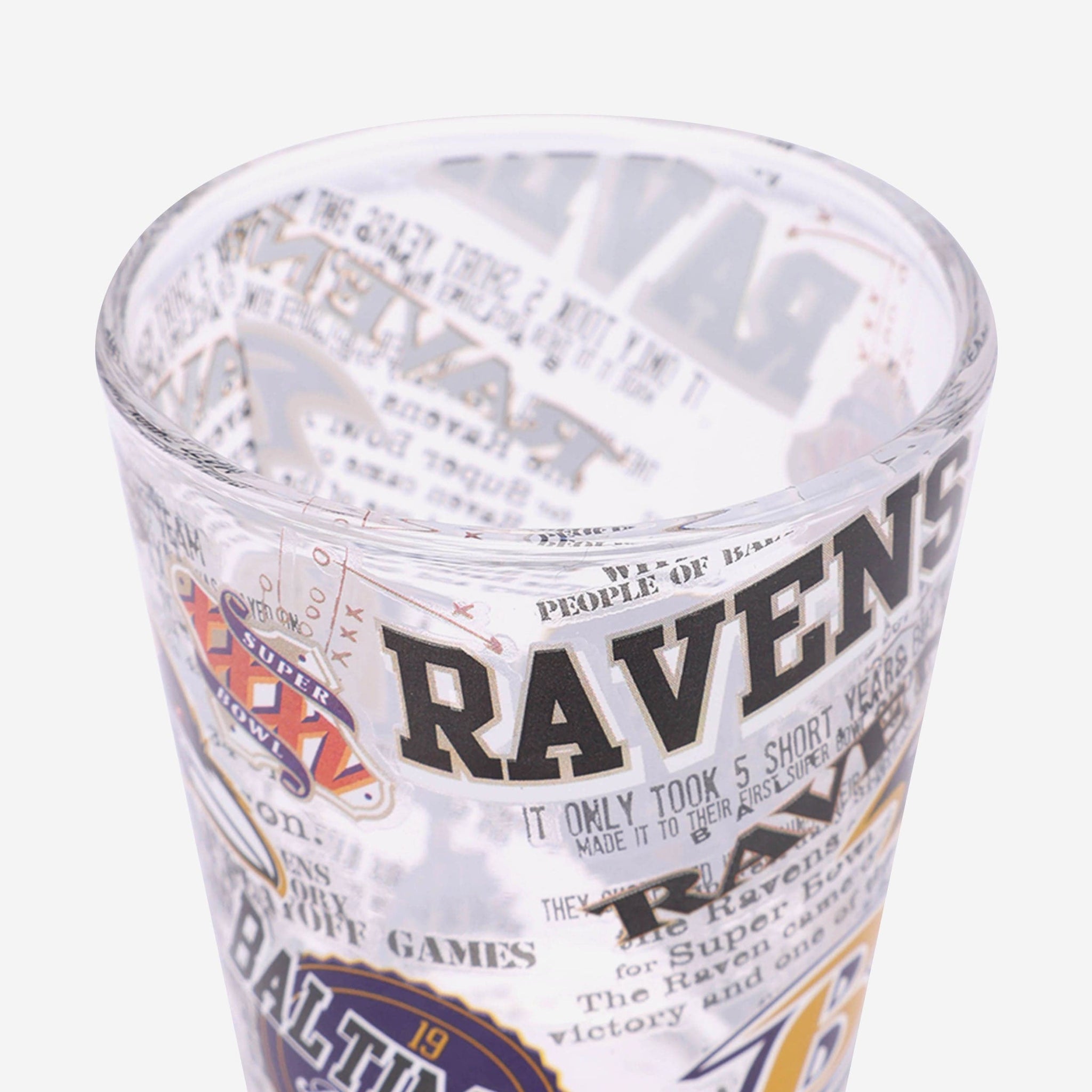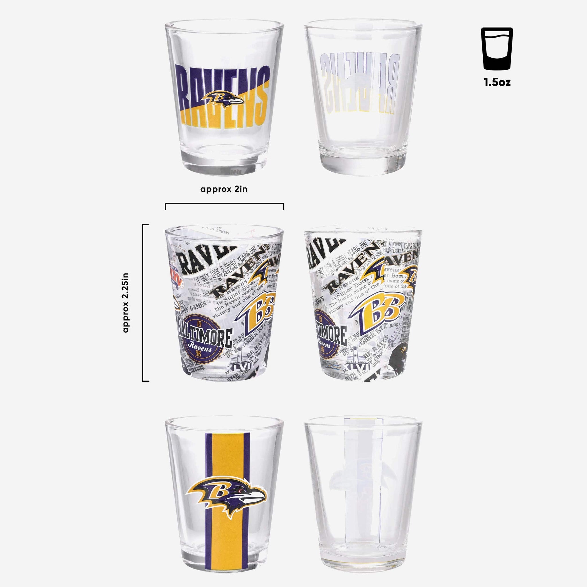 - Third glass features all-over repeat design with team logo displays and thematic team-specific elements throughout that will really get the party started