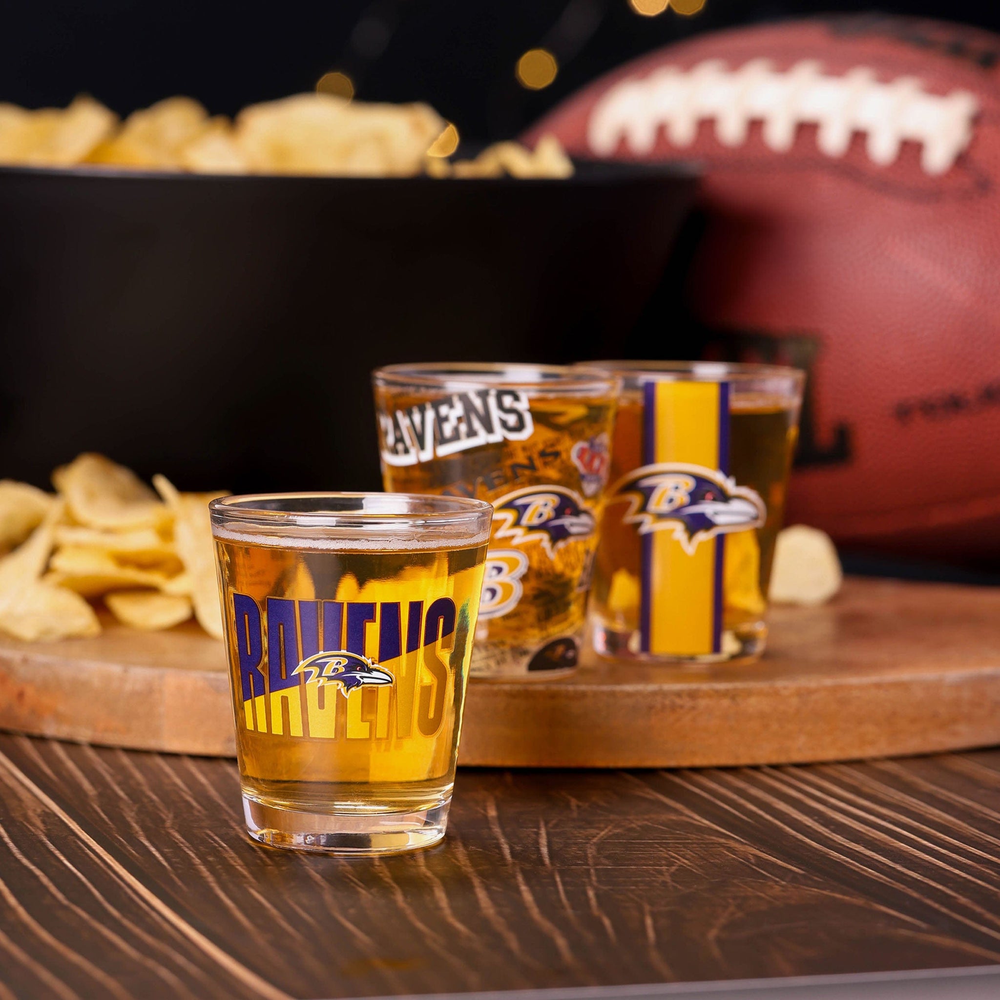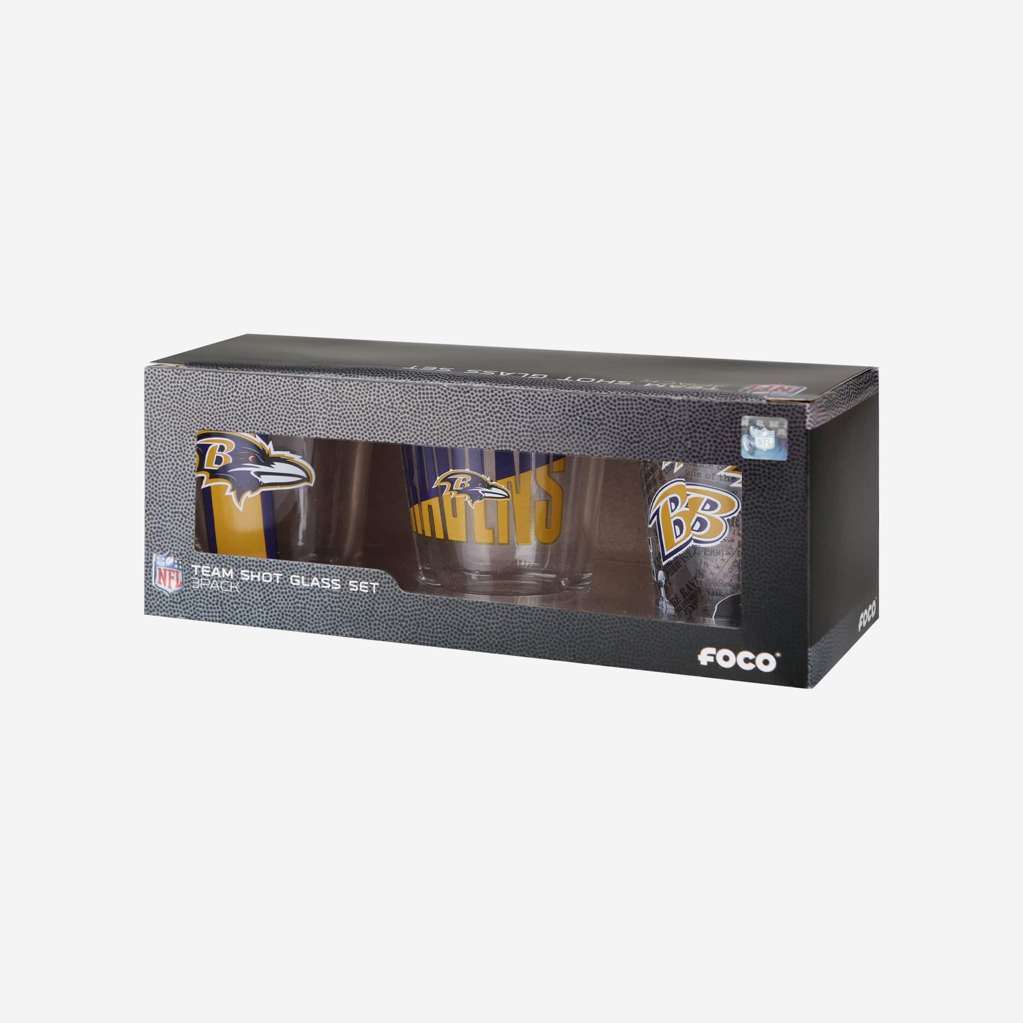 Gameday meets the night life. The Baltimore Ravens 3 Pack Shot Glass is the perfect addition to the fancave of the mixologist in your life.