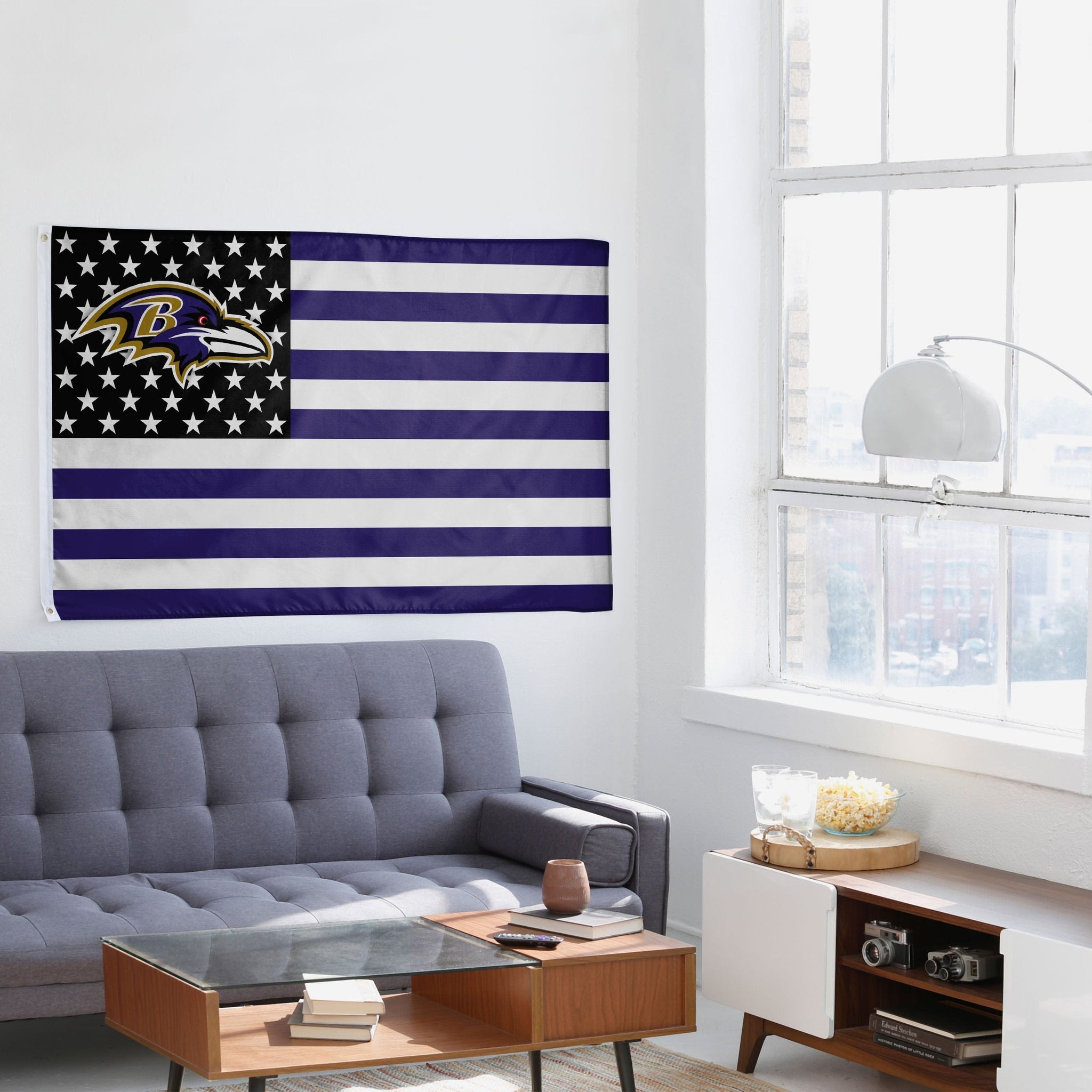 When you add this Baltimore Ravens American Stars Horizontal Flag to your fancave, you and your fellow fans will be ready to celebrate some stars, stripes, and team spirit.