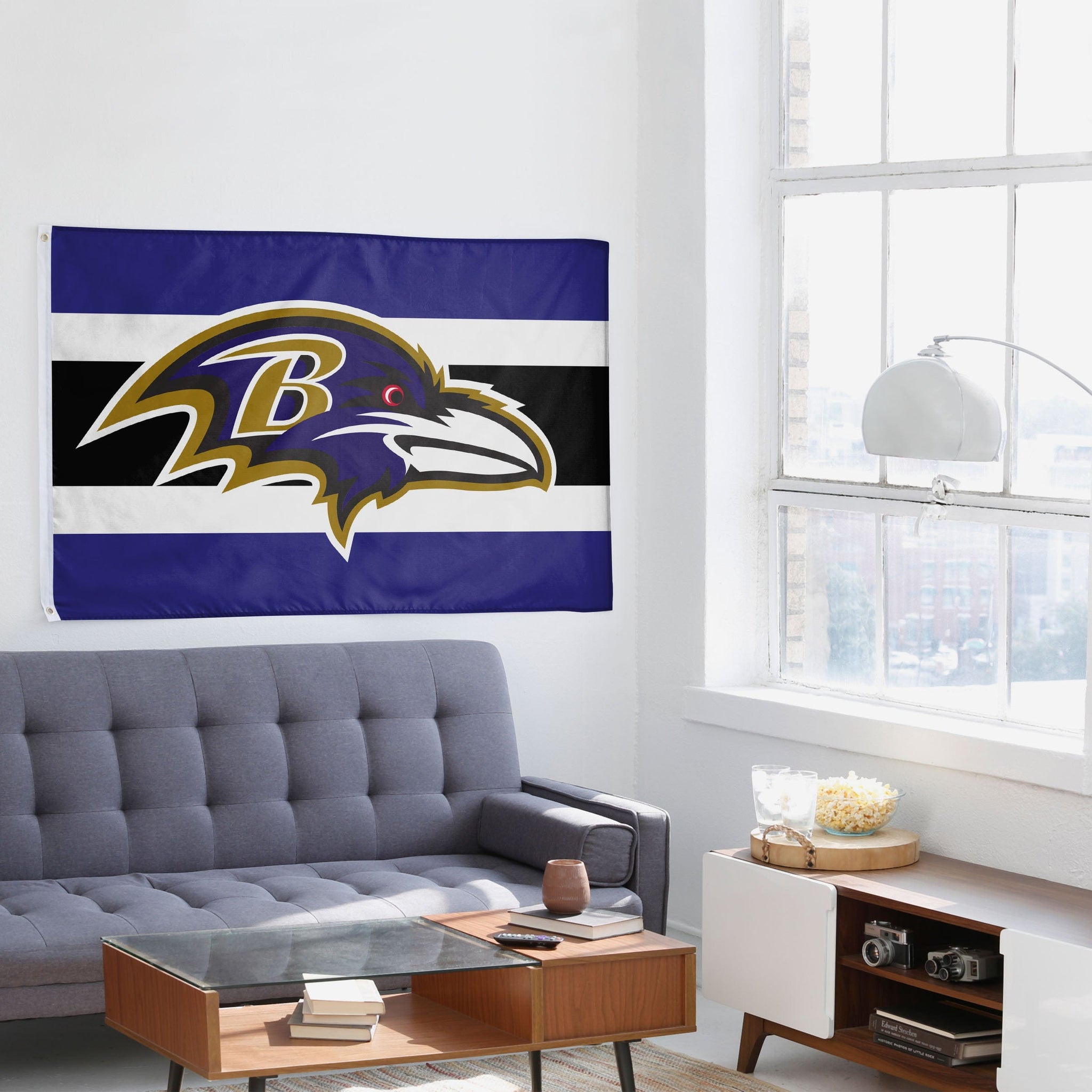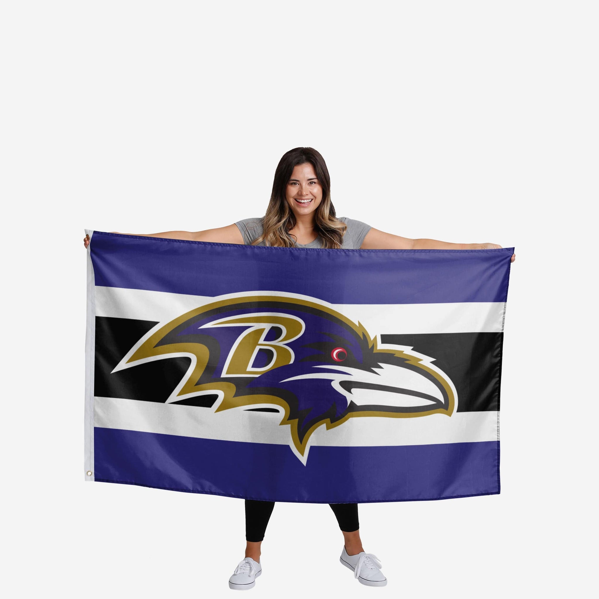 Baltimore Ravens Big Logo Team Stripe Horizontal Flag FOCO - FOCO.com