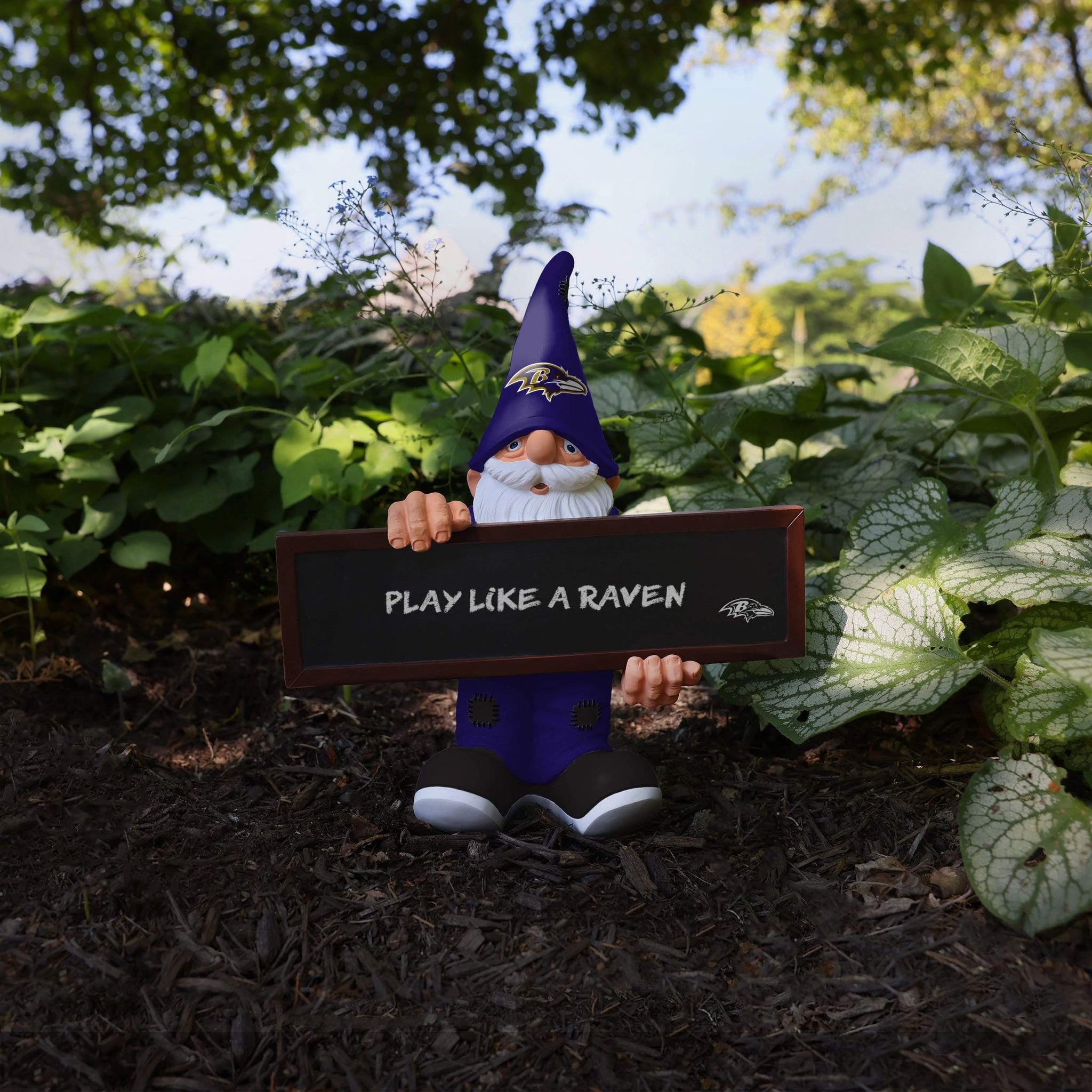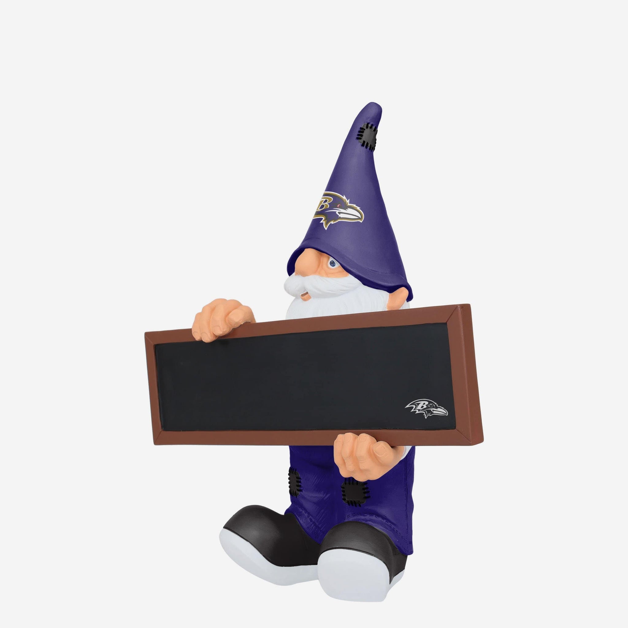 Chalk this one up as a victory! Make a statement and show off your epic team pride with this Baltimore Ravens Chalkboard Sign Gnome!