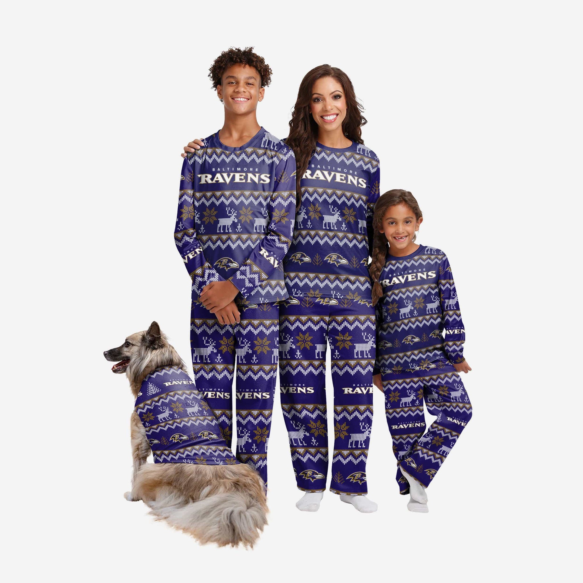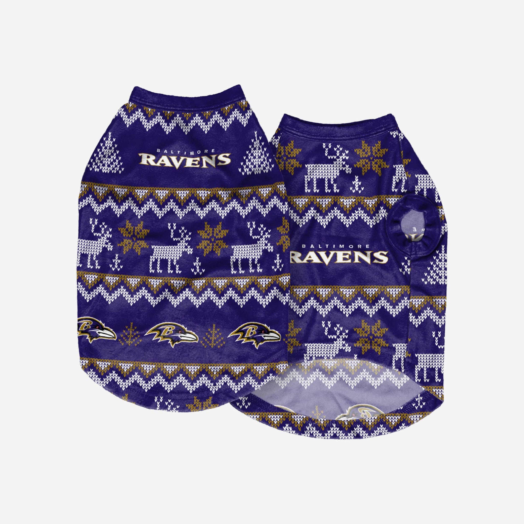 Show off your pet's holiday spirit with this dog sweater! Your good boy (or girl) will love this Baltimore Ravens Dog Family Holiday Ugly Sweater so much, they'll be saying WOOF BARK AWOOO (that's THANK YOU in pup language). Don't forget to match your canine's sweater with a set of matching holiday pajamas!