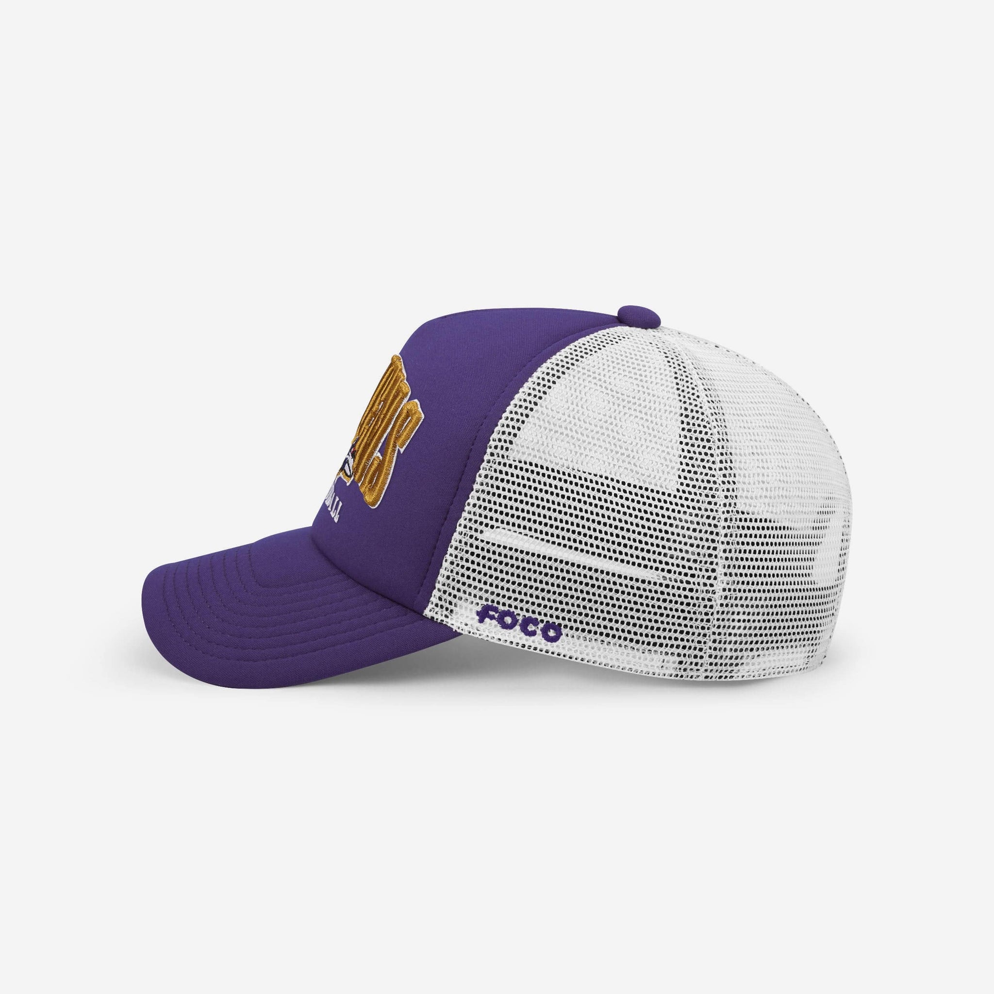 Whether you're behind the wheel of a big rig or in the stands at the game, this Baltimore Ravens Foam Trucker Cap is just the thing for your outfit. Featuring an embroidered team logo and wordmark display and unstructured design with a curved visor and high crown, you’ll be all set to play the role of trucker and fan. Plus, the mesh panels and adjustable snapback snap closure makes this hat perfect for any adventure.