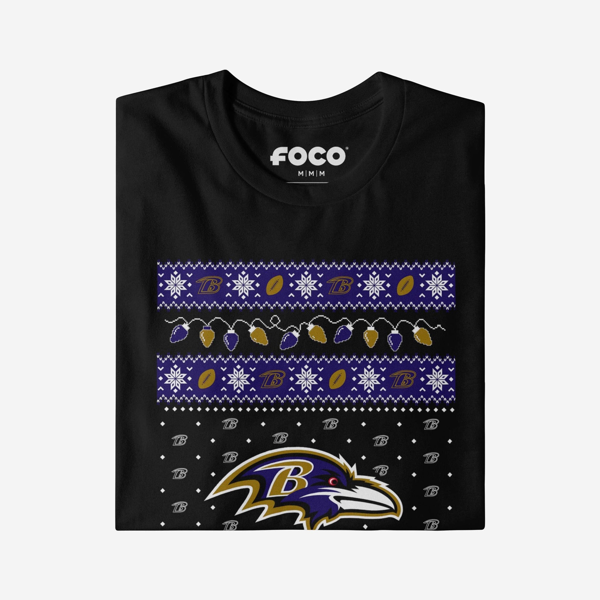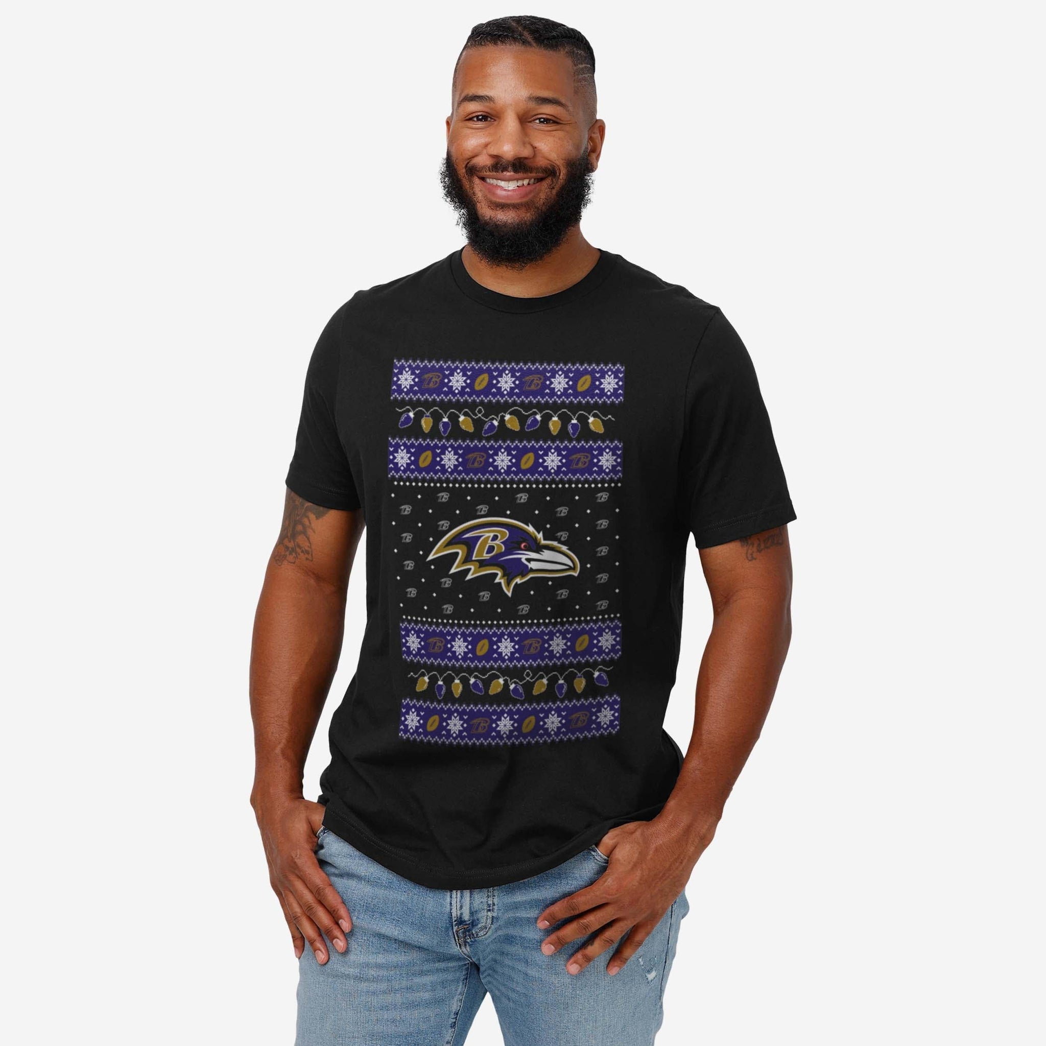 ‘Tis the season for some festive fandom! Make this holiday season merry and bright with the Baltimore Ravens Holiday Lights Sweater T-Shirt.