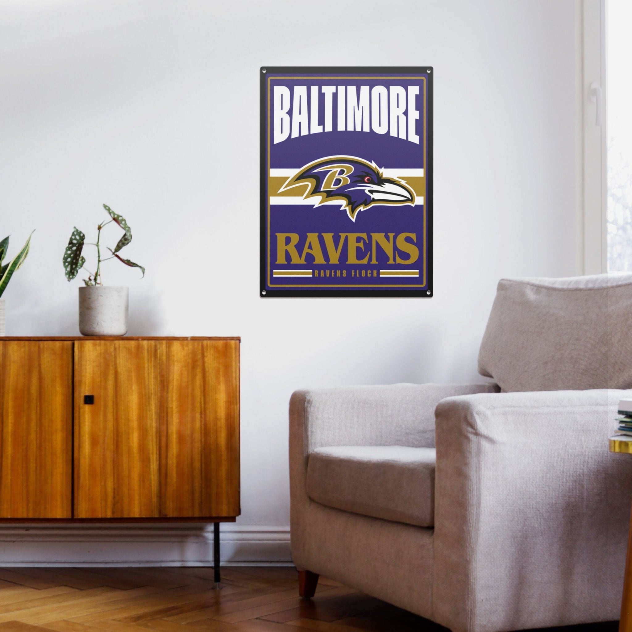 This is a sign. Literally! This is a sign to show off your team spirit from the comfort of your fancave with this Baltimore Ravens Metal Tacker Wall Sign.