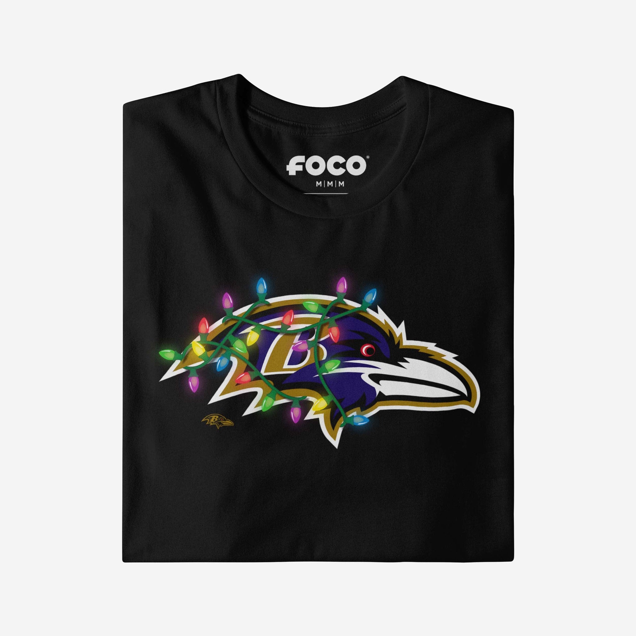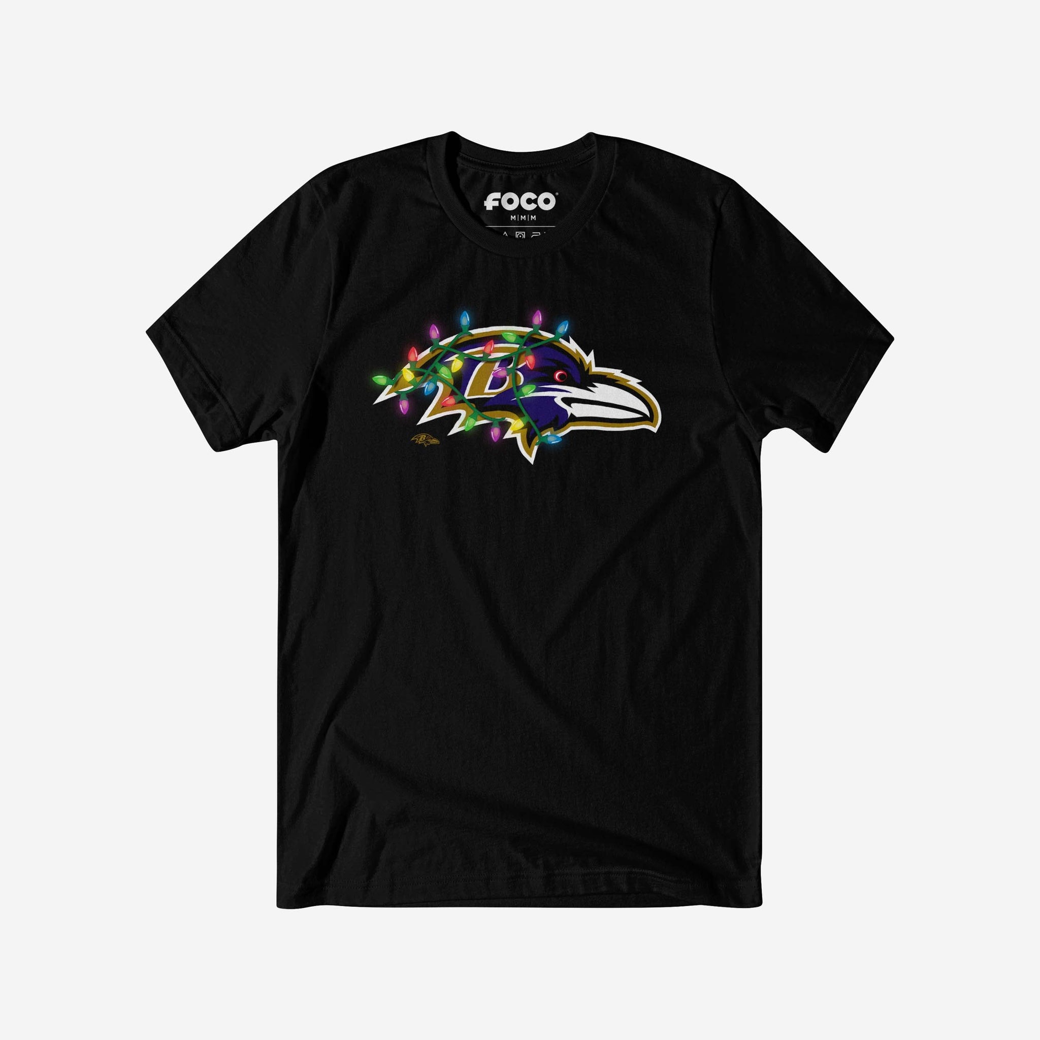 Merry, bright, and full of team spirit! Let your fandom light the way to a legendary holiday season with this Baltimore Ravens Primary Logo Holiday Lights T-Shirt.
