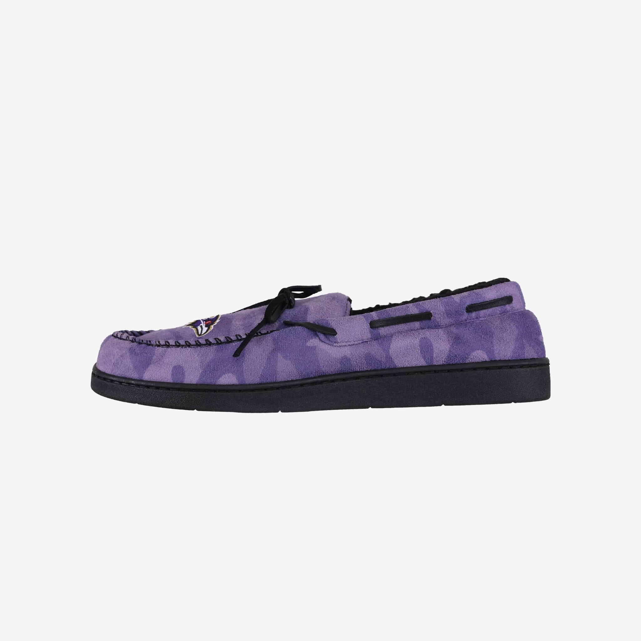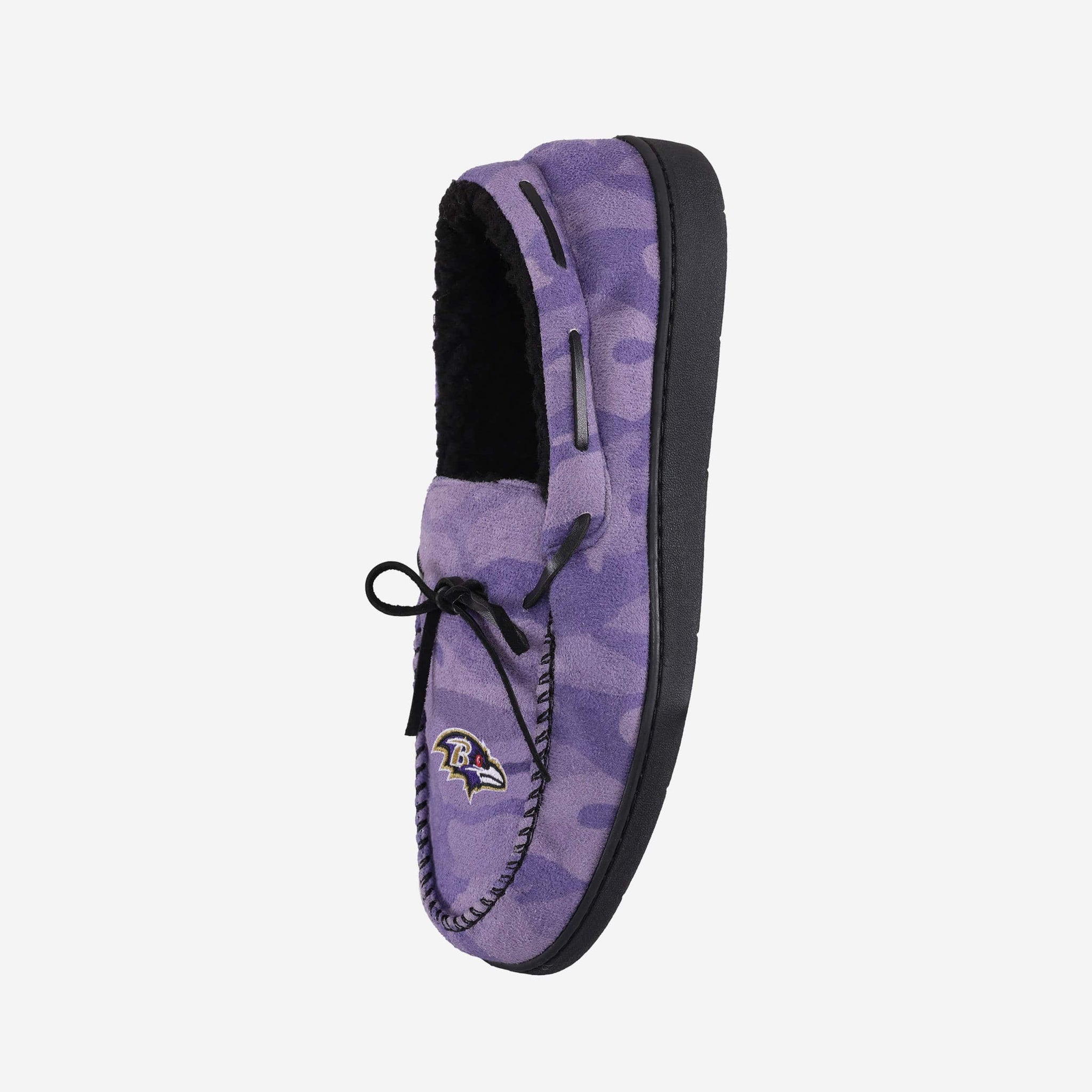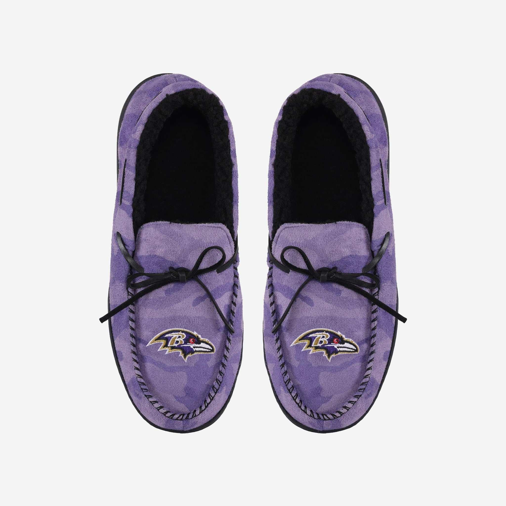 Despite their stylish camouflage design, there will be nothing discrete about your one-of-a-kind team spirit when you're rocking these Baltimore Ravens Printed Camo Moccasins!