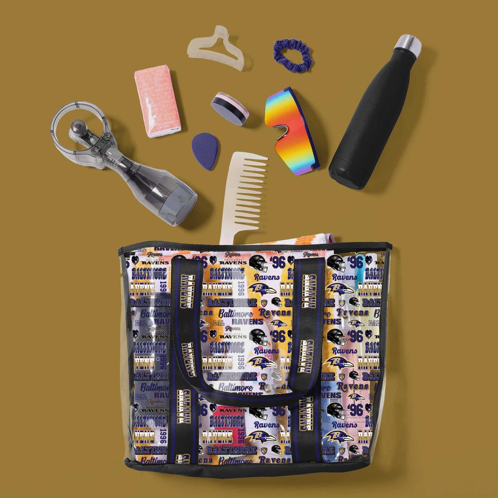 You've got it in the bag. The tote bag, that is! When you take this Baltimore Ravens Repeat Retro Print Clear Tote Bag with you while running errands or to the game, your fandom will clearly be on display all year long.