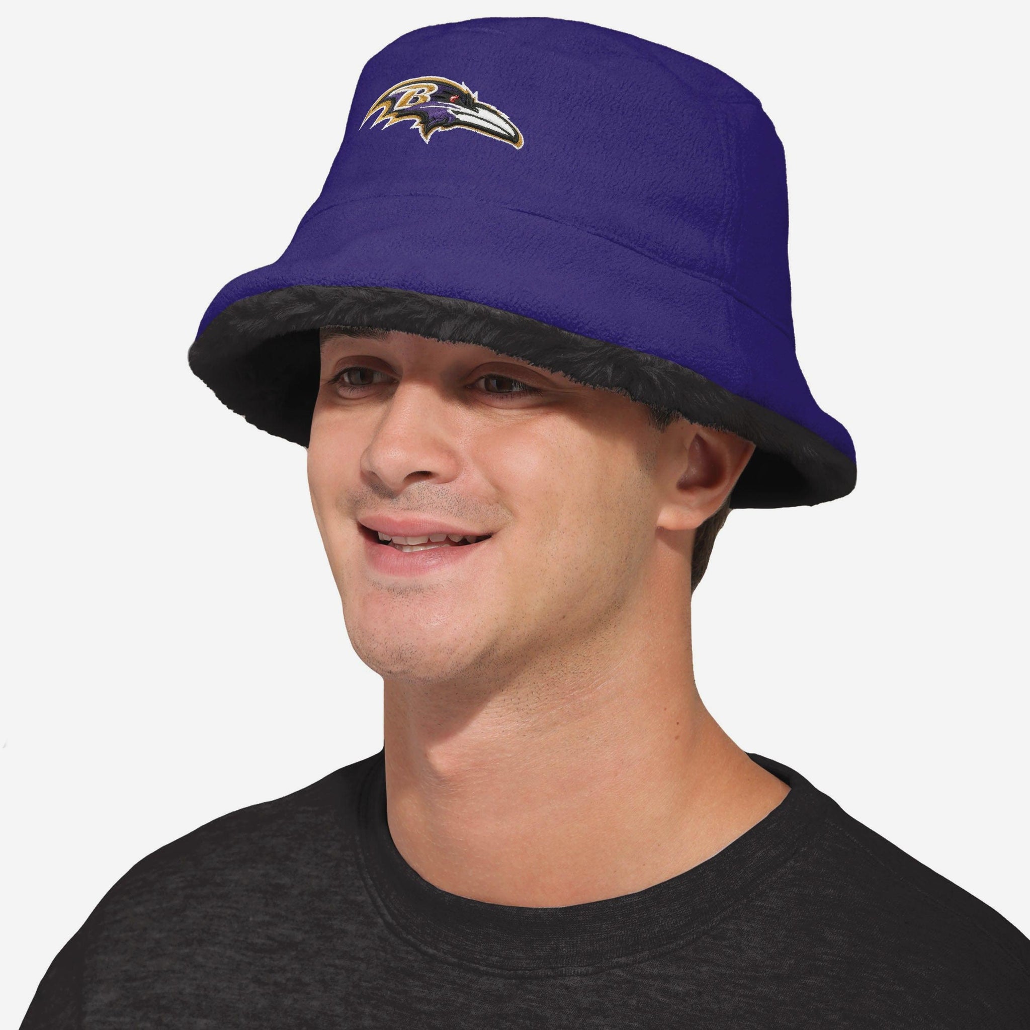 Baltimore Ravens Reversible Faux Fur Bucket Hat FOCO - FOCO.com