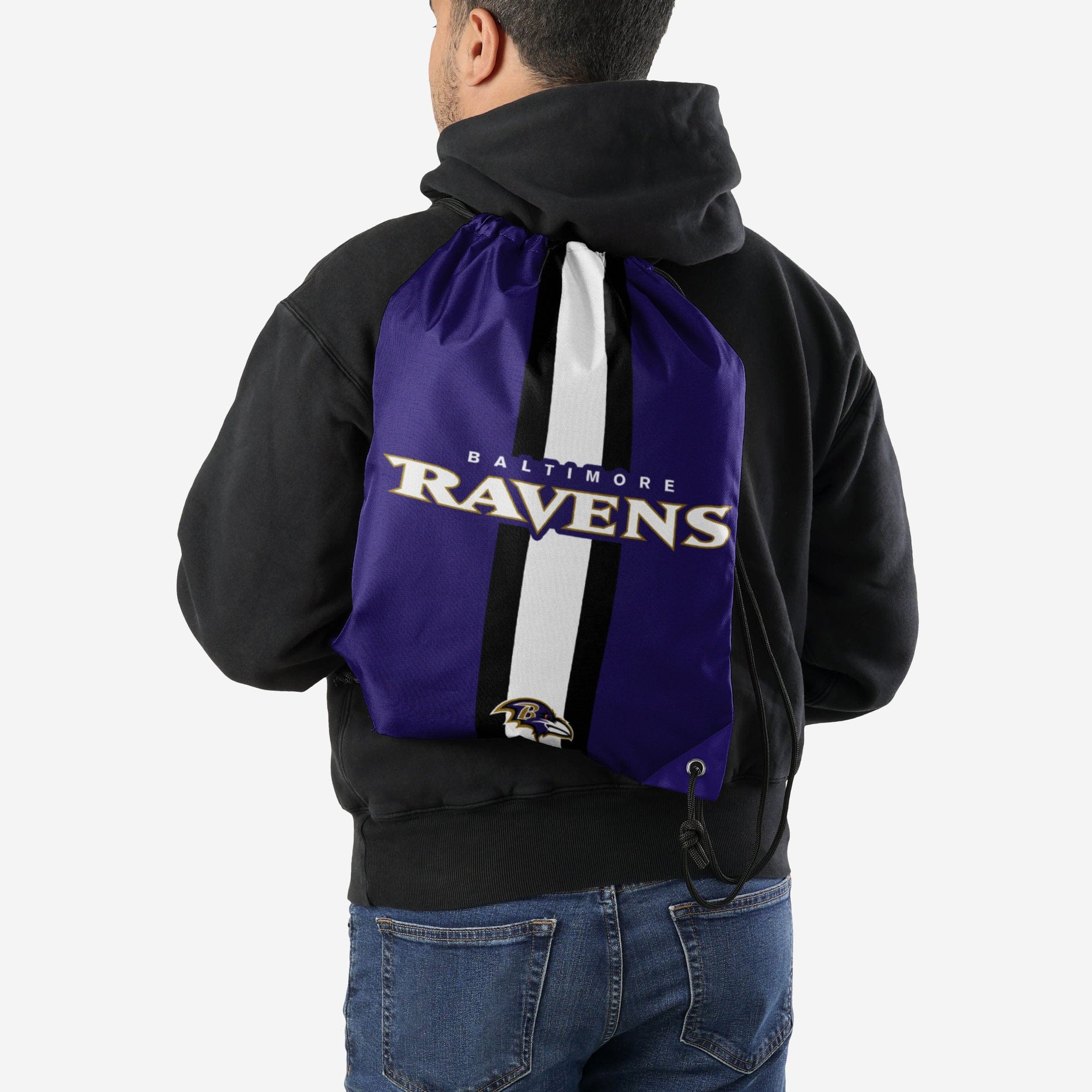 Want to get hyped with stripes? Then you want to gear up on the go with this Baltimore Ravens Team Stripe Wordmark Drawstring Backpack.