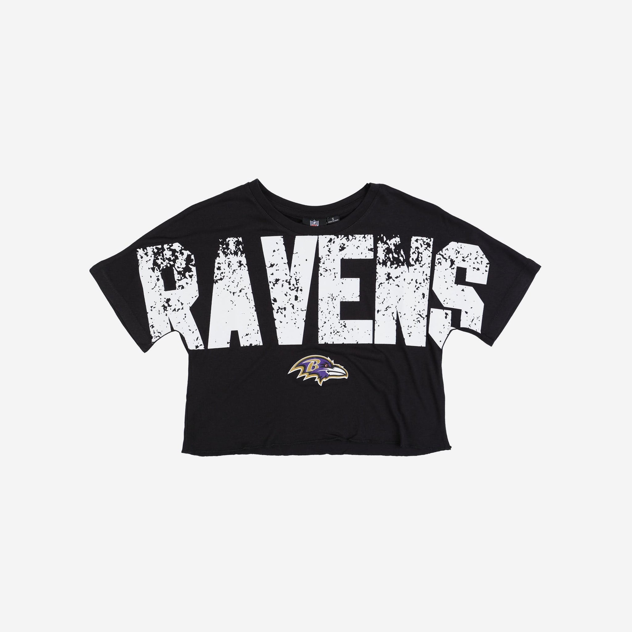 Baltimore Ravens Womens Distressed Wordmark Crop Top FOCO - FOCO.com