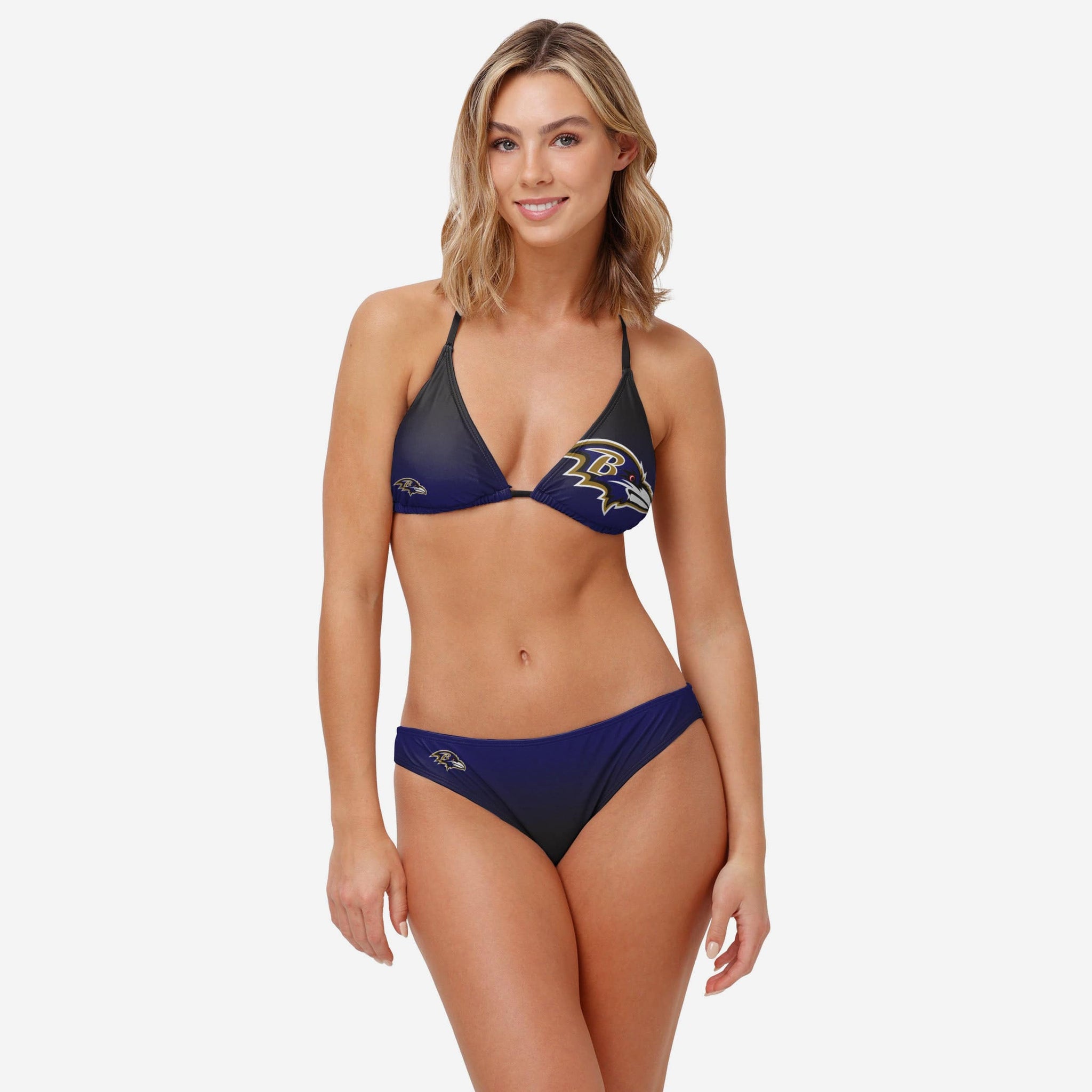 Add a splash of team color into your spring and summer styles with the Baltimore Ravens Women's Gradient Big Logo Bikini Bottom!
