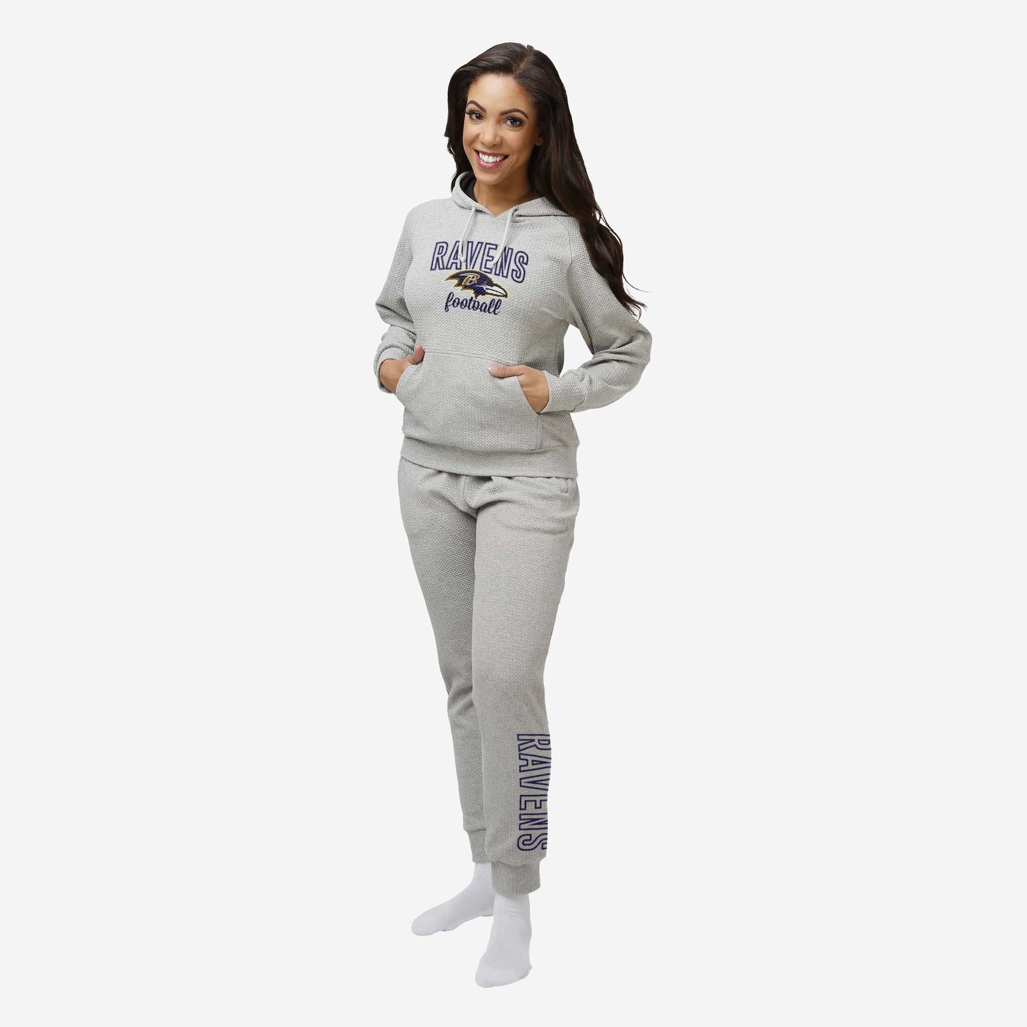 Gym. Couch. Track. Store. Wherever you, go there comfortably by wearing these Baltimore Ravens Women's Gray Woven Joggers!