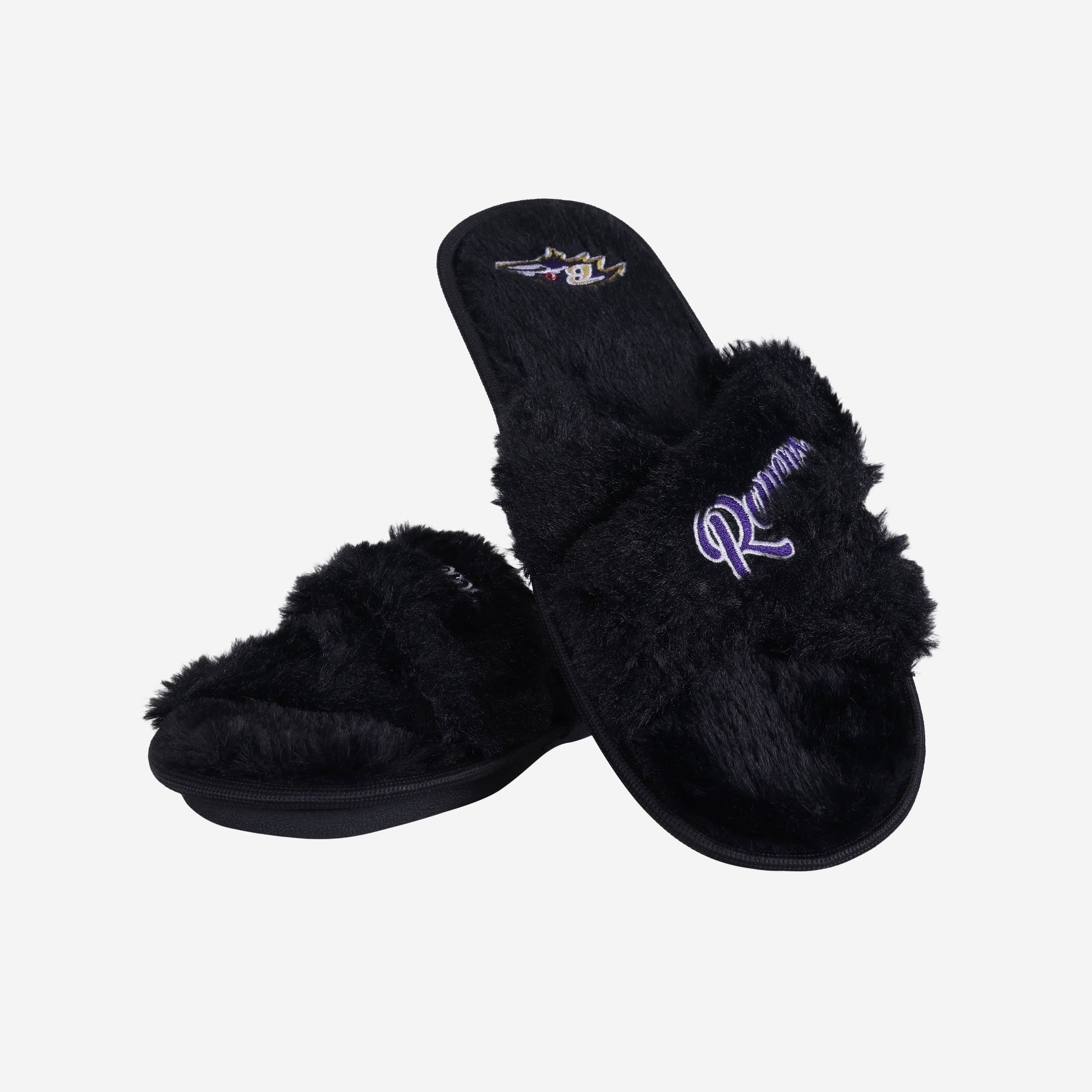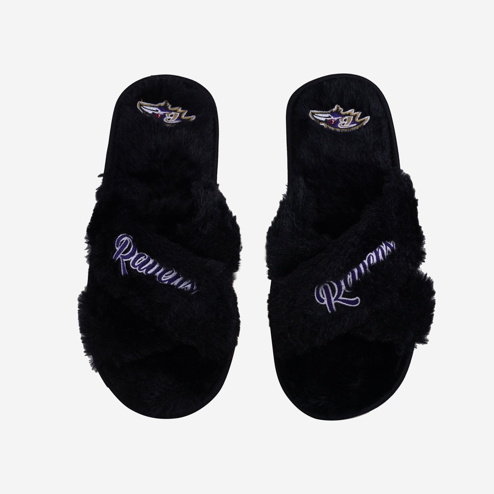 Slip in to something fuzzy, festive, and oh, so fan-tastic on your relaxing days at home. These Baltimore Ravens Women's Script Wordmark Fur Cross Slides are the best way to rep the team while you kick back and watch the game on TV.