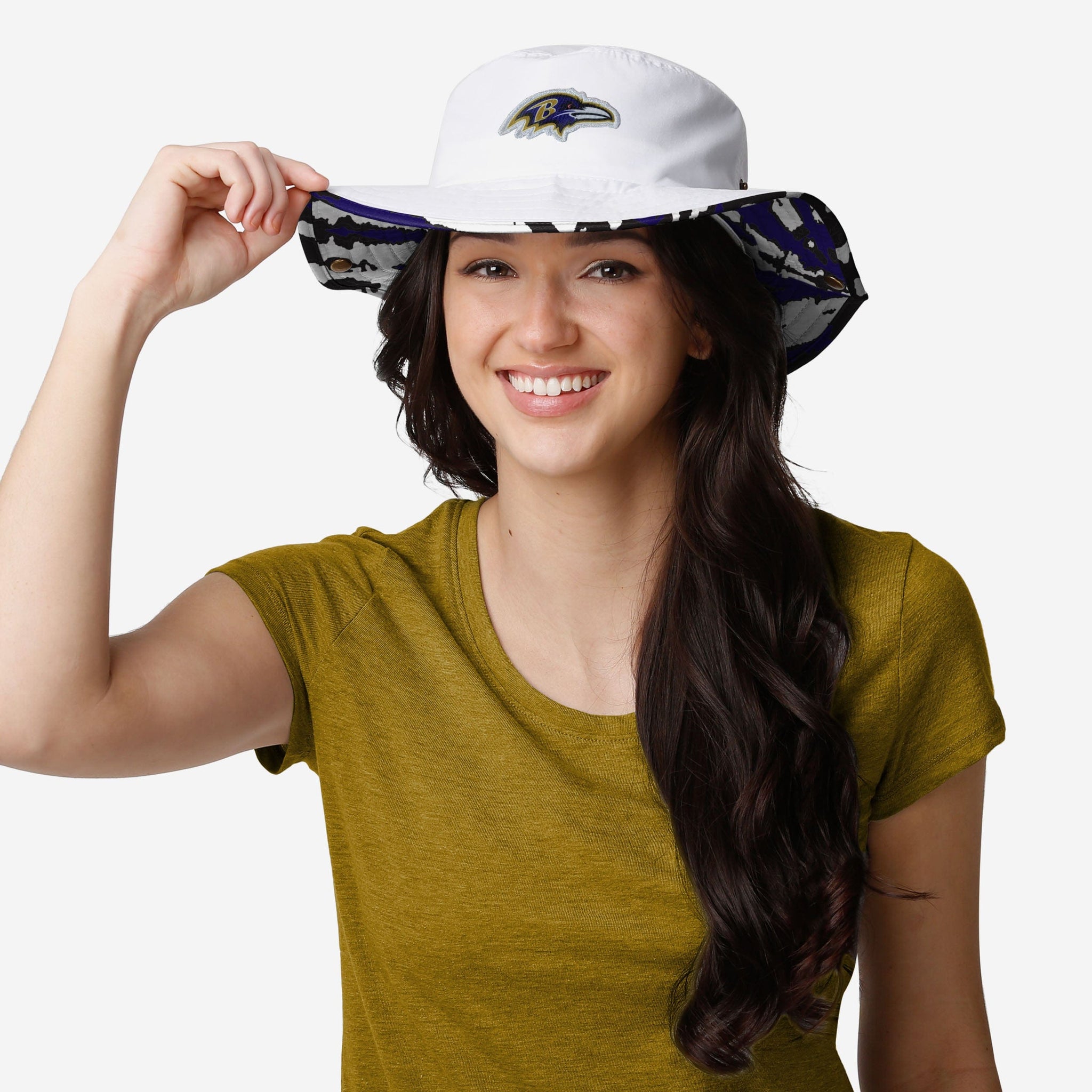 On those toasty, sunny days, your team has you covered! Literally. Assemble the most fashionable fit when you're on the go and keep cool with this Baltimore Ravens Women's White Hybrid Boonie Hat!