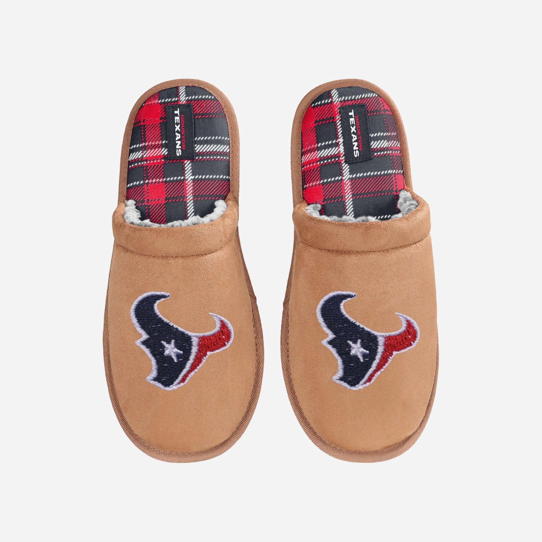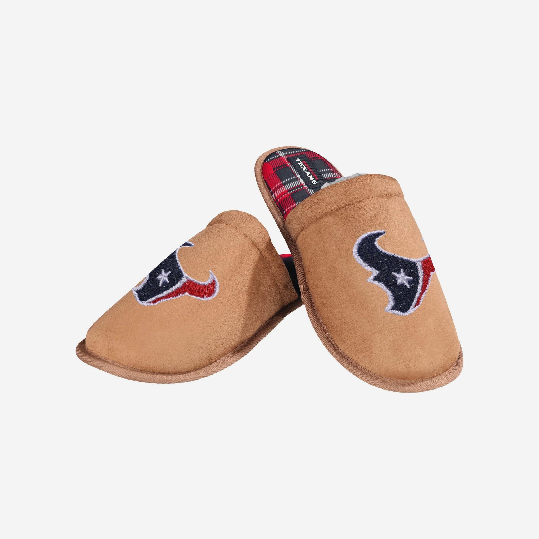 Houston Texans Flannel Lined Brown Suede Scuff Slipper FOCO S - FOCO.com