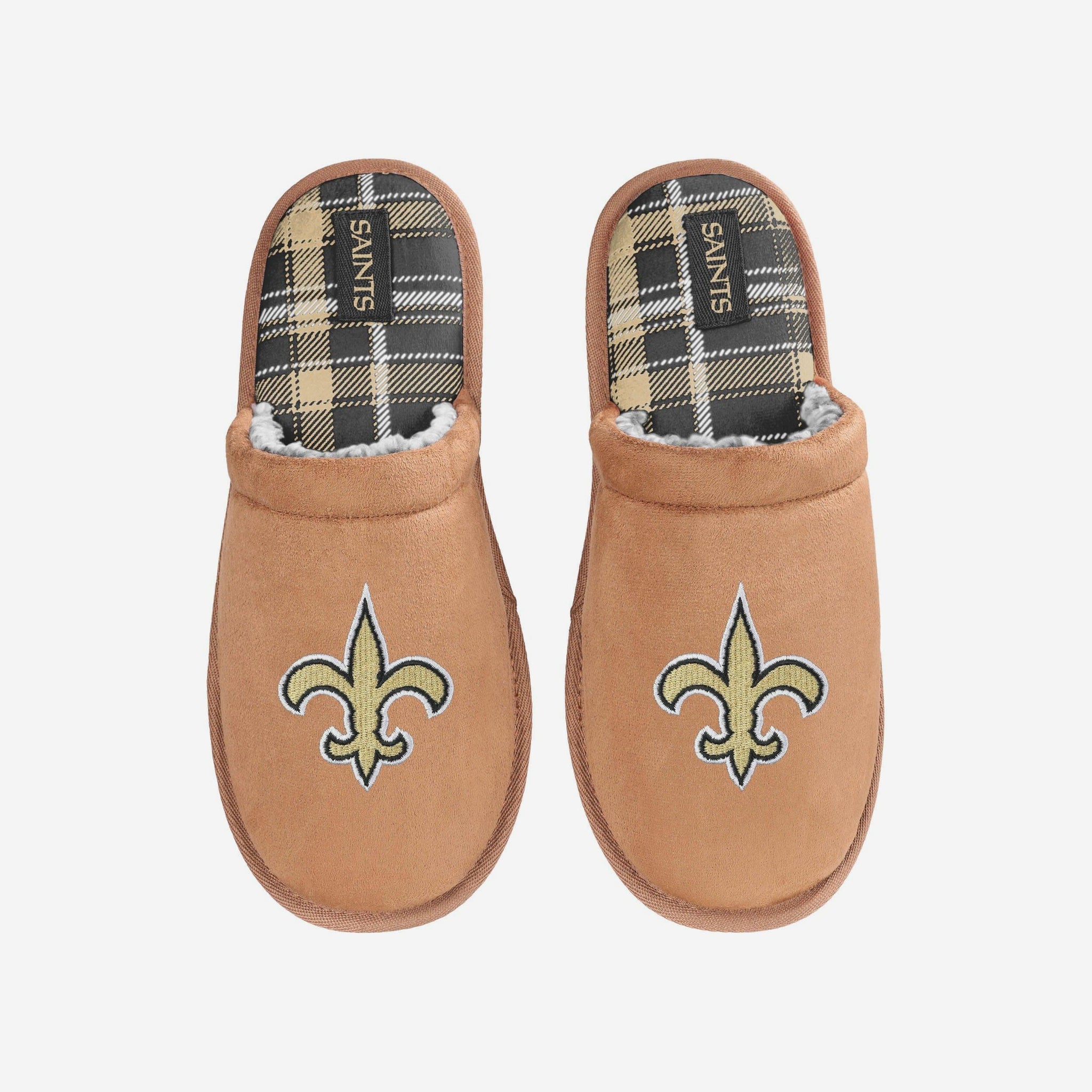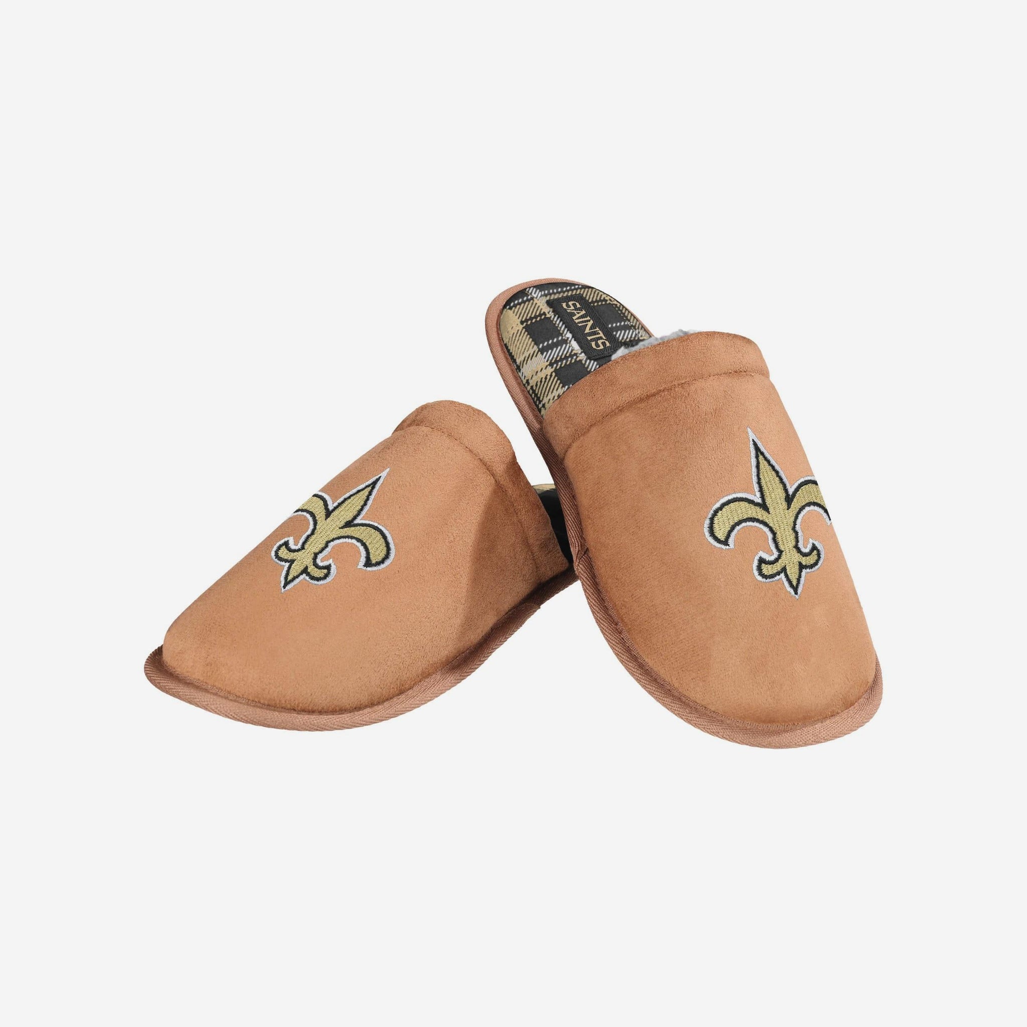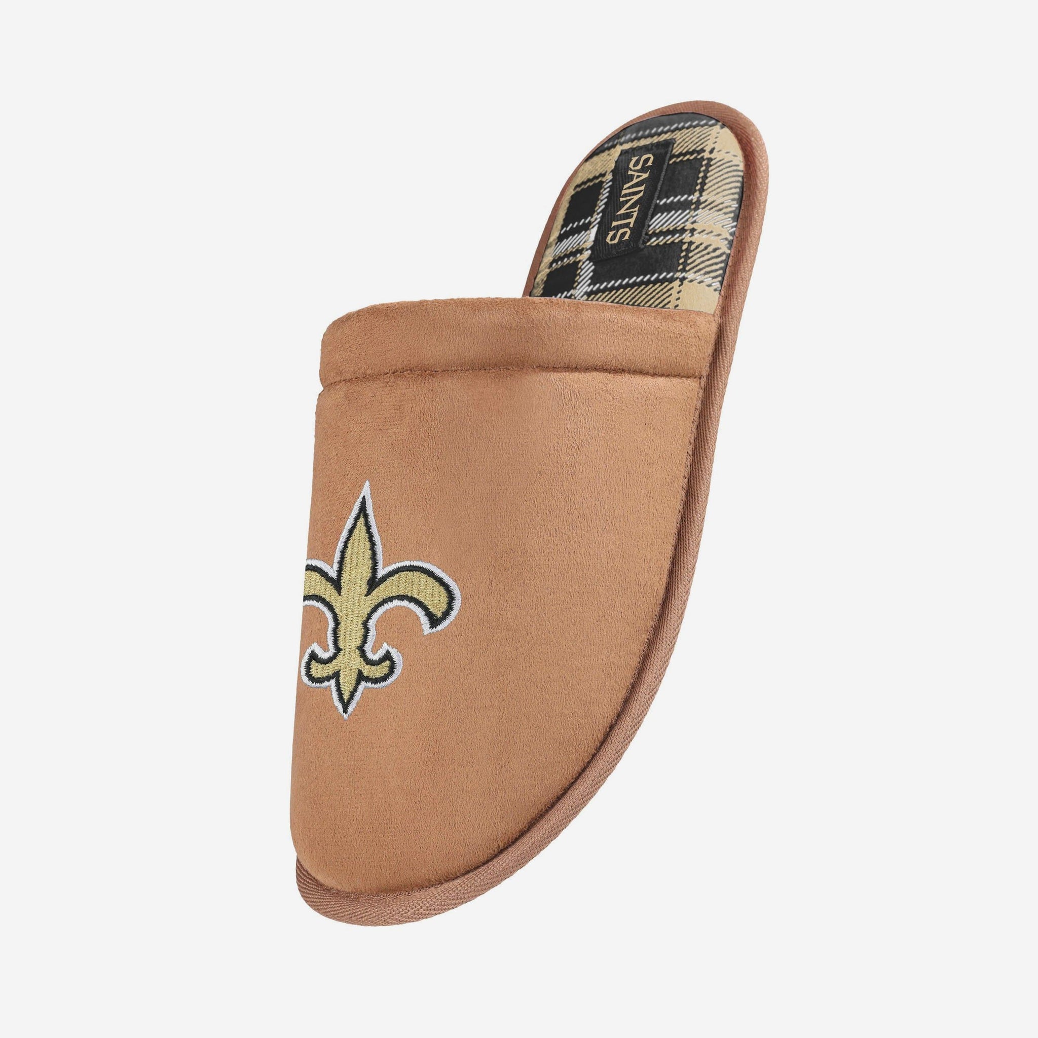 New Orleans Saints Flannel Lined Brown Suede Scuff Slipper FOCO S - FOCO.com