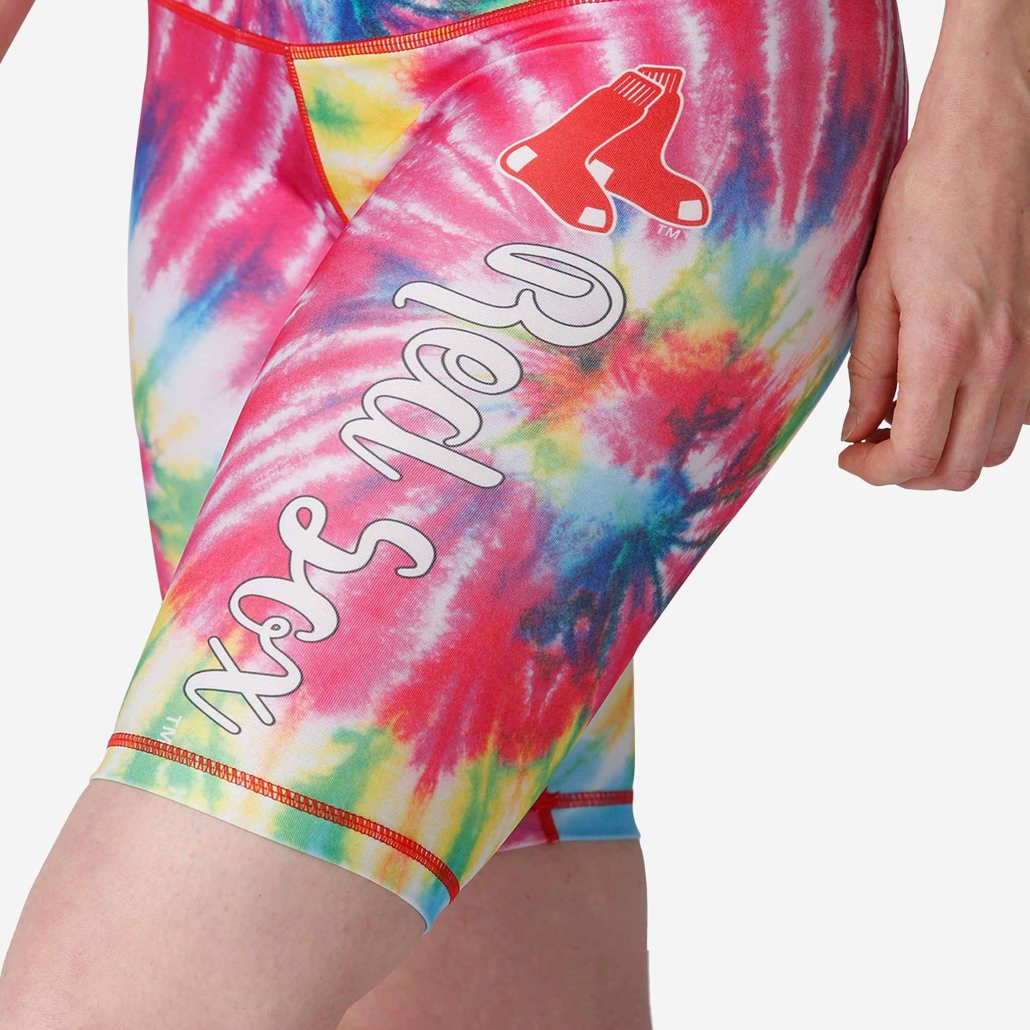 It's tie dye time! Work out your team spirit in these Boston Red Sox Women's Tie-Dye Bike Shorts!