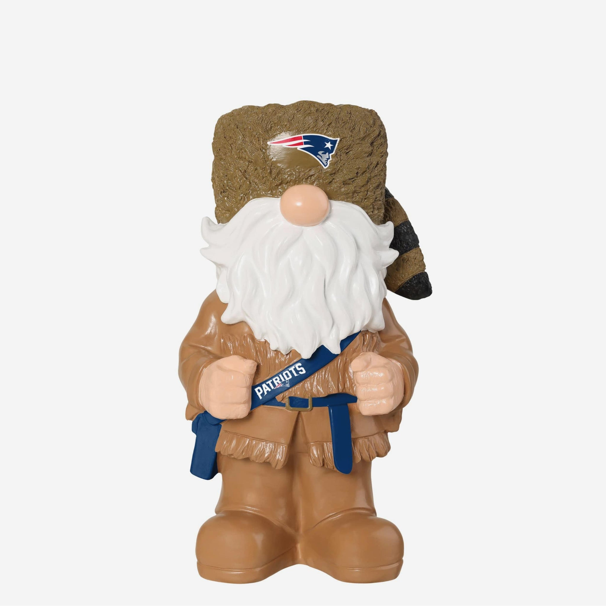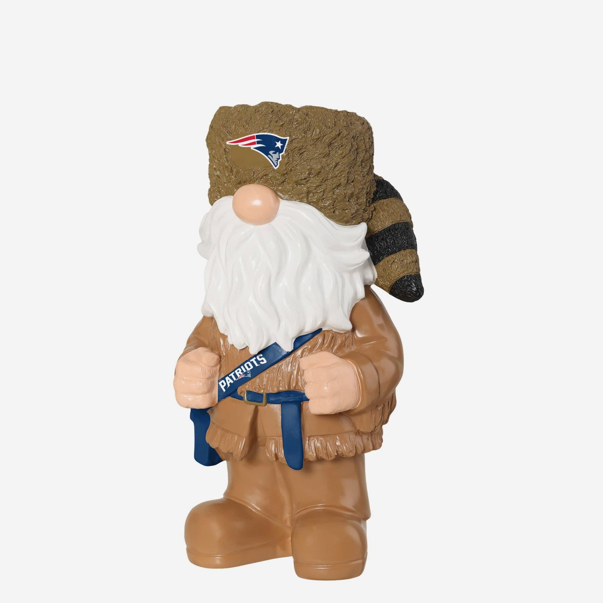 Blaze a trail of team pride with the New England Patriots Frontiersman Americana Gnome. Featuring rugged frontier style mixed with patriotic flair, this bold backyard companion is ready to defend your lawn and your fandom.