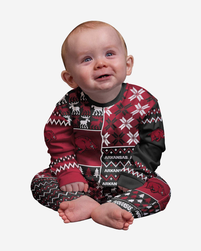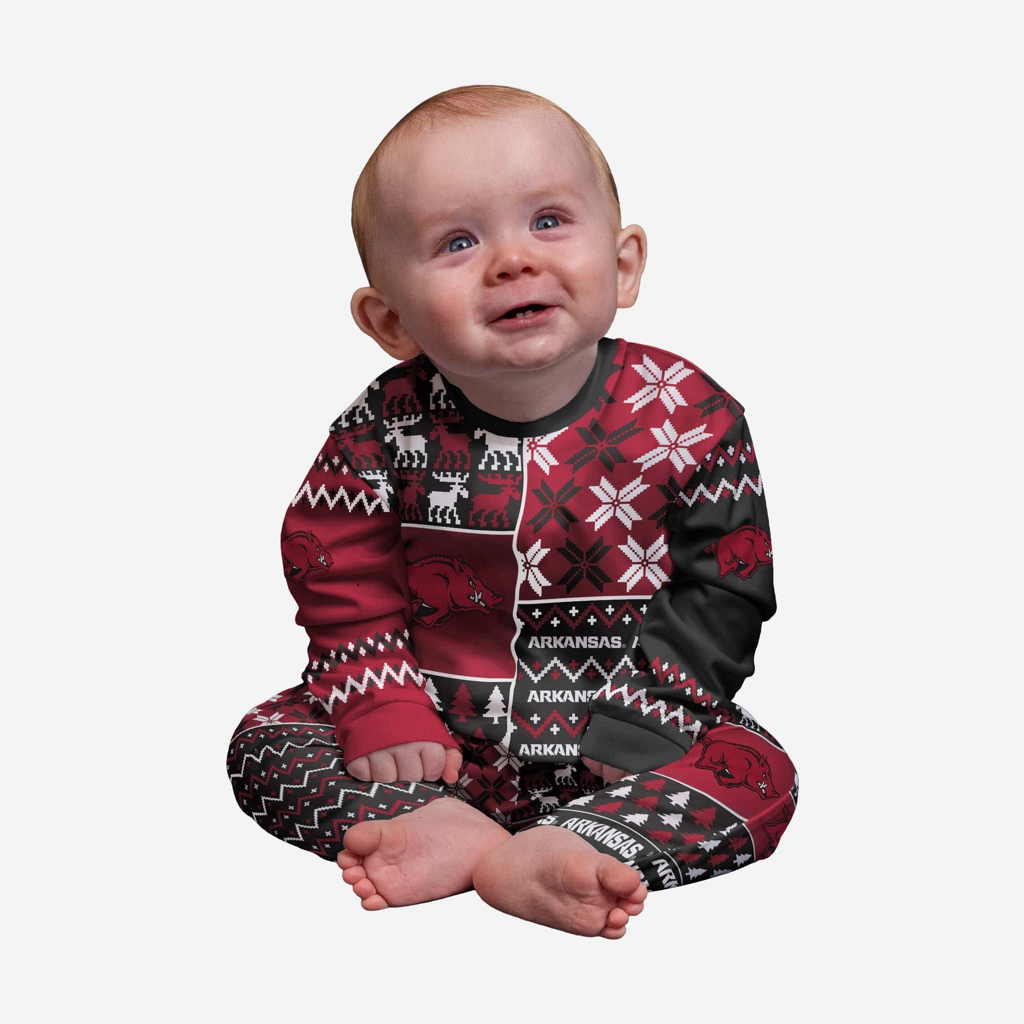 Get your young fan started early this holiday season in these Arkansas Razorbacks Infant Busy Block Family Holiday Pajamas! Your baby will absolutely love these matching Christmas pajamas! Make sure your infant enjoys sweet dreams filled with holiday joy by having them sleep in infant pajamas. Don't forget to take your holiday photo with the whole family wearing matching Christmas pajamas!