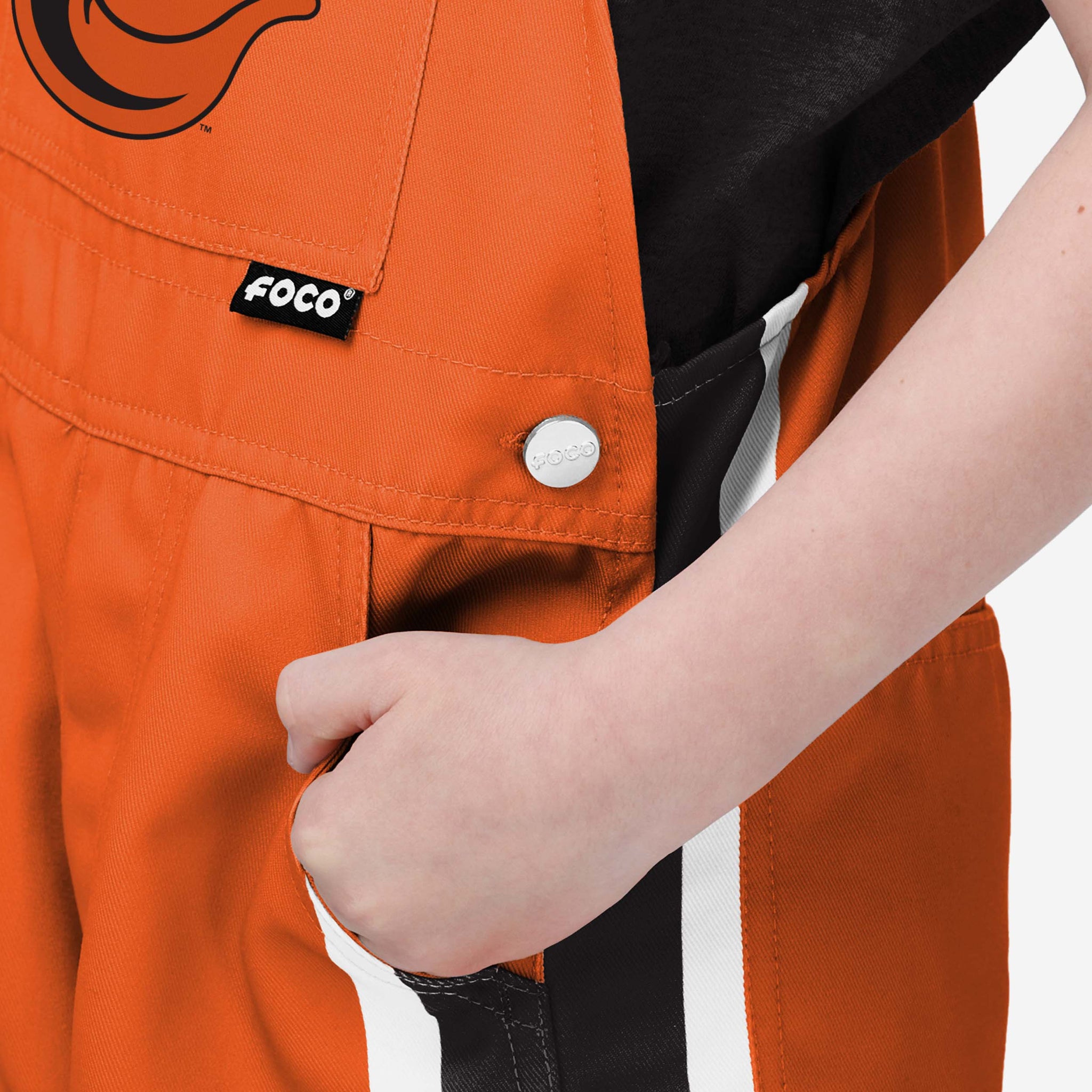 • All-over team-colored design: These overalls are covered in the official Baltimore Orioles colors, so your young fan can show off their team spirit with pride.