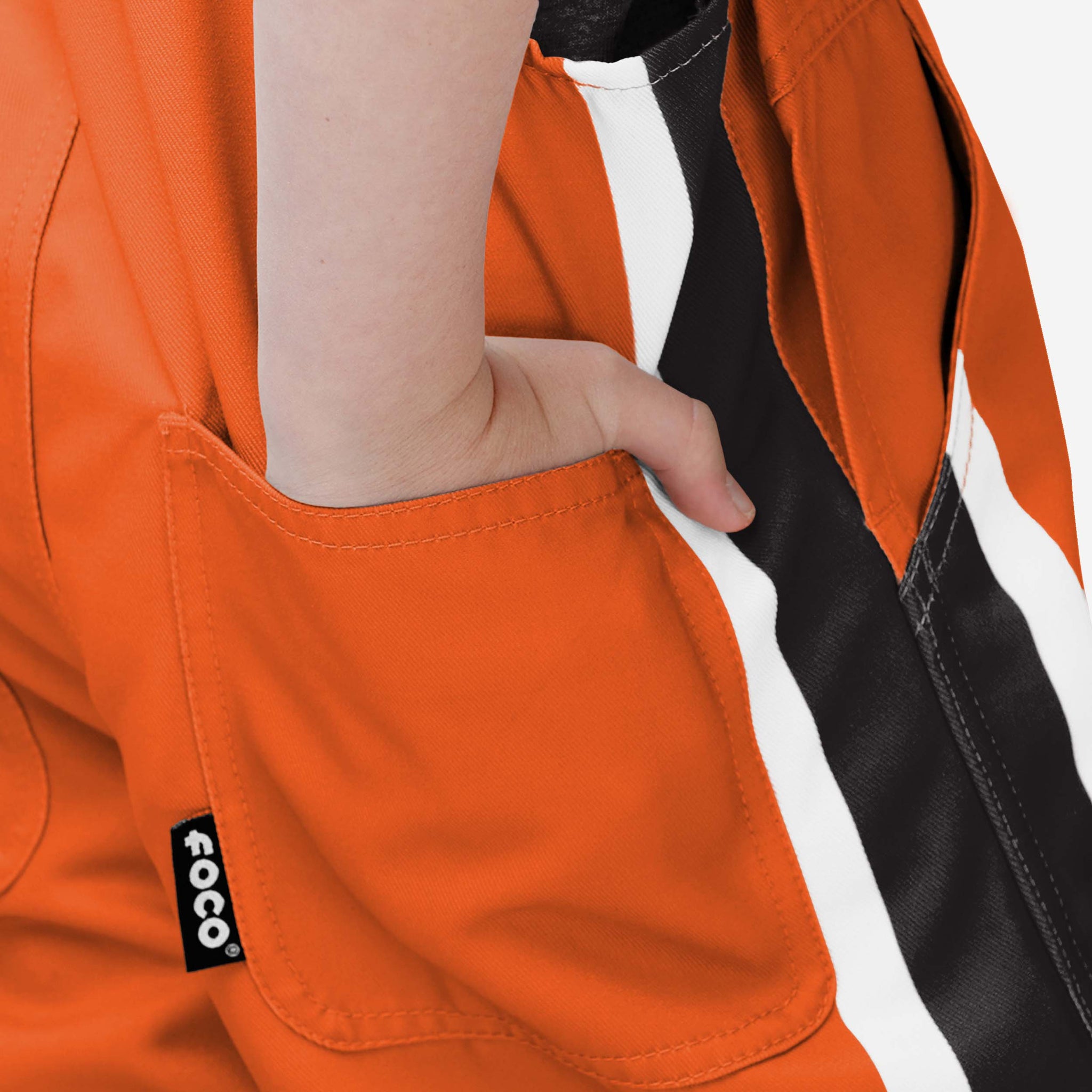 • Bold team logo displays: The front of the overalls and the front of the left leg feature a large team logo, so everyone will know who you're rooting for.