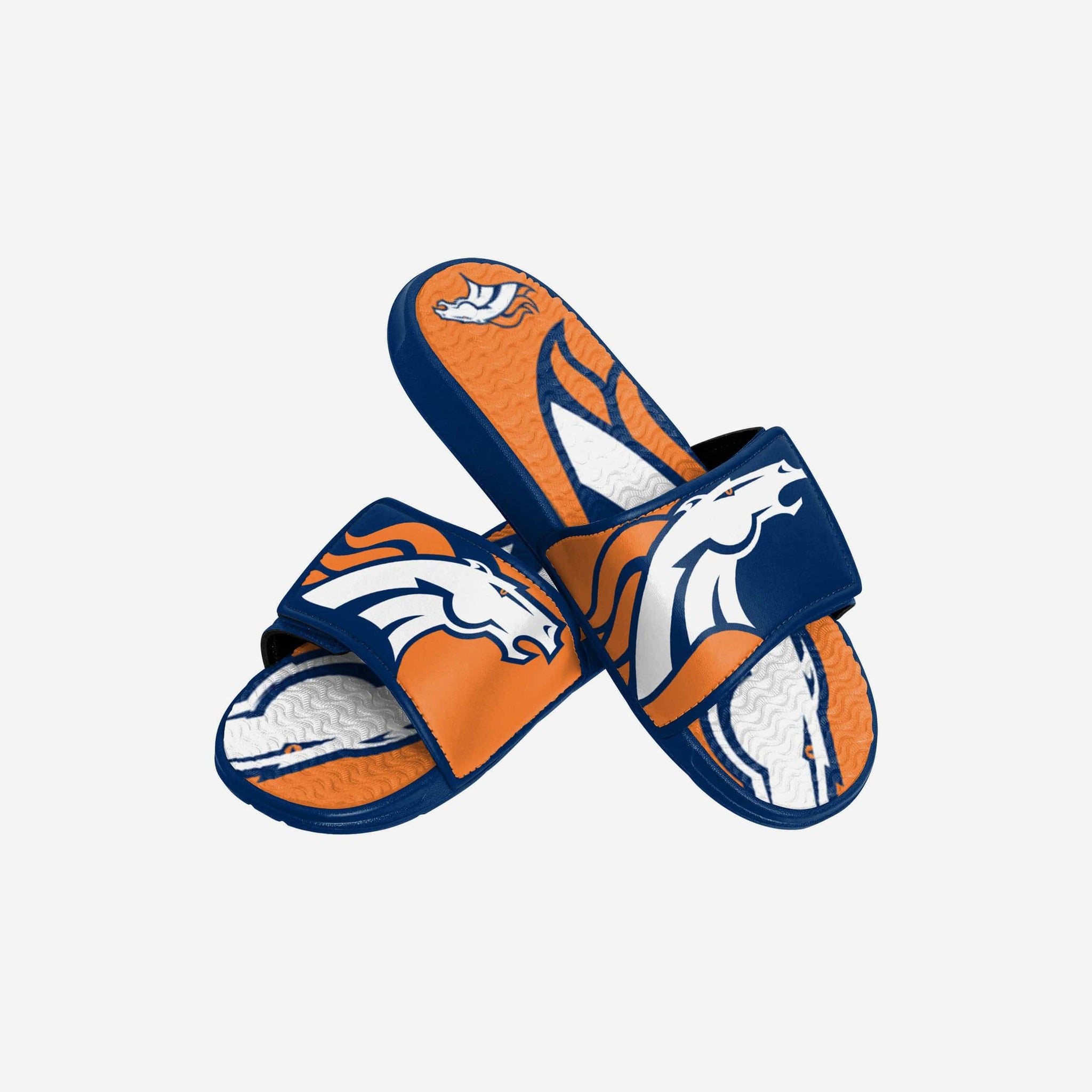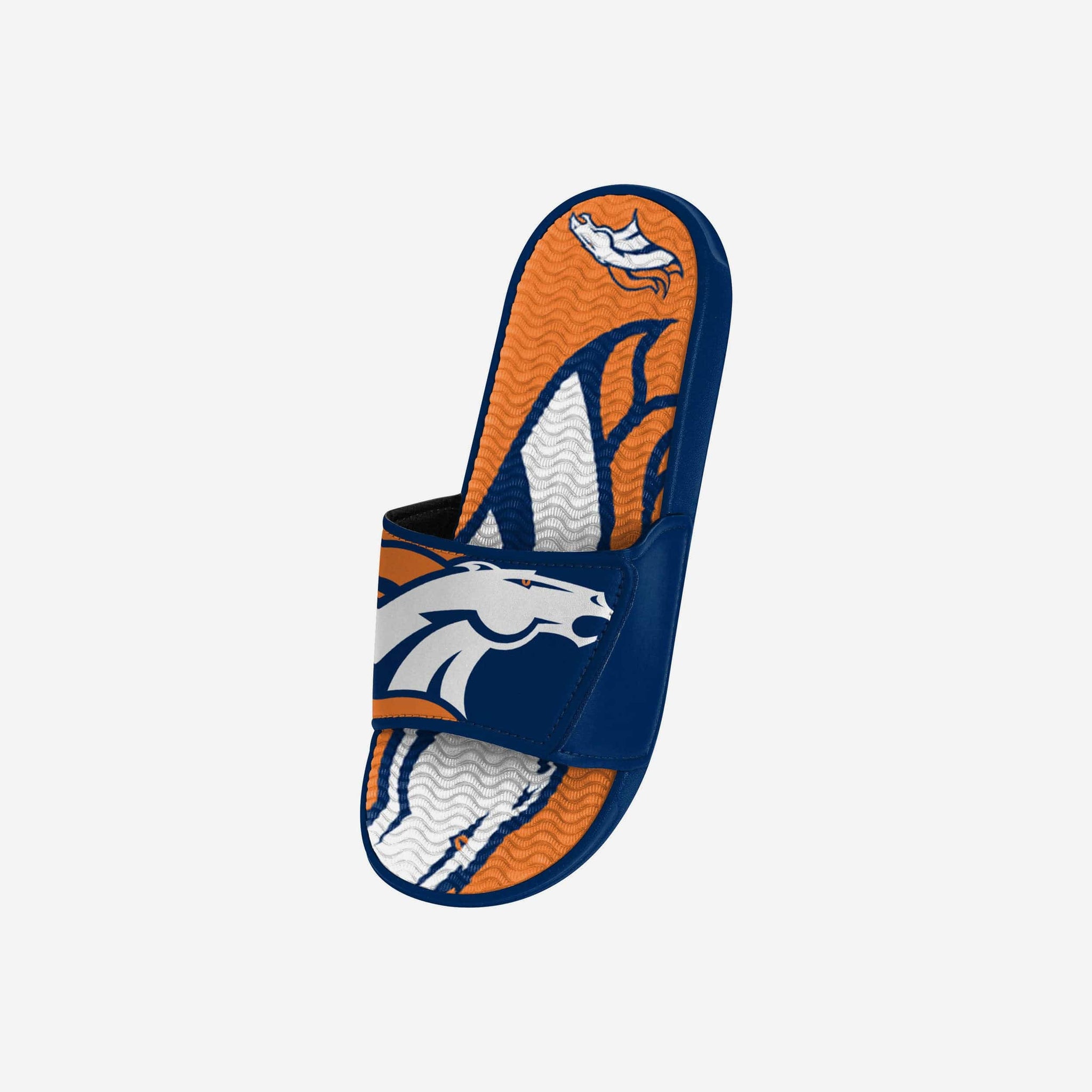 From stadium stands to sandy shores, your young fan will be ready to step INTO the comfort zone thanks to these Denver Broncos Youth Colorblock Big Logo Gel Slides!