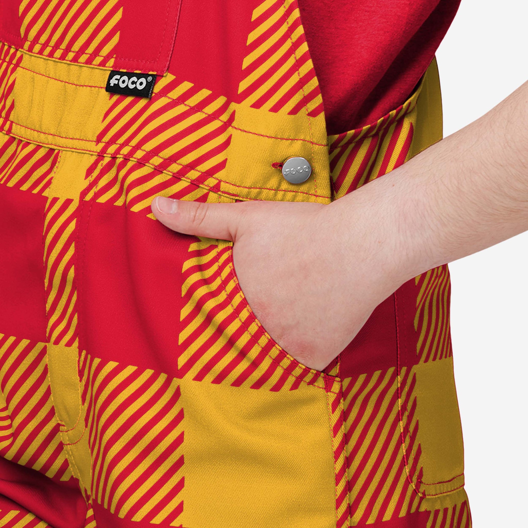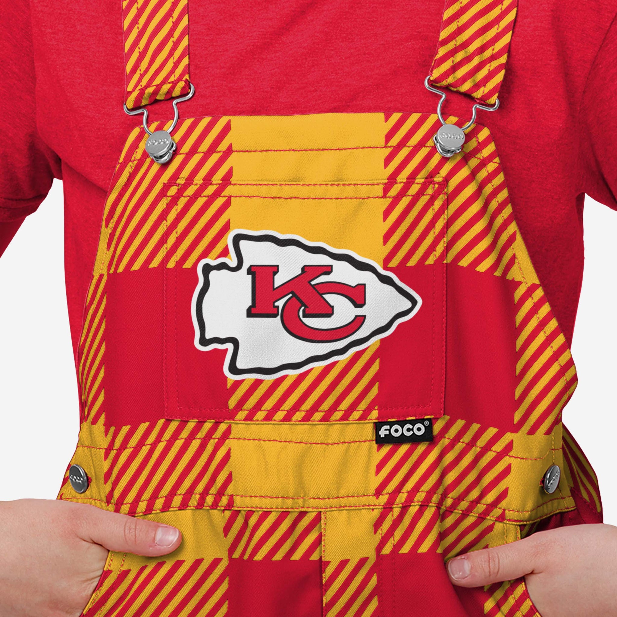 • All-over team-colored design: These overalls are covered in the official Kansas City Chiefs colors, so your young fan can show off their team spirit with pride.