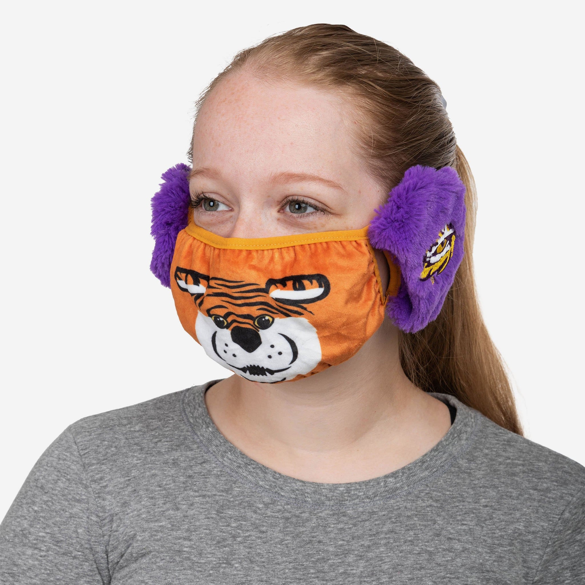 Cover up while you represent your favorite team in this Mike the Tiger LSU Tigers Mascot Earmuff face covering!
