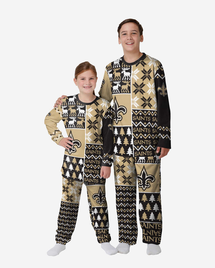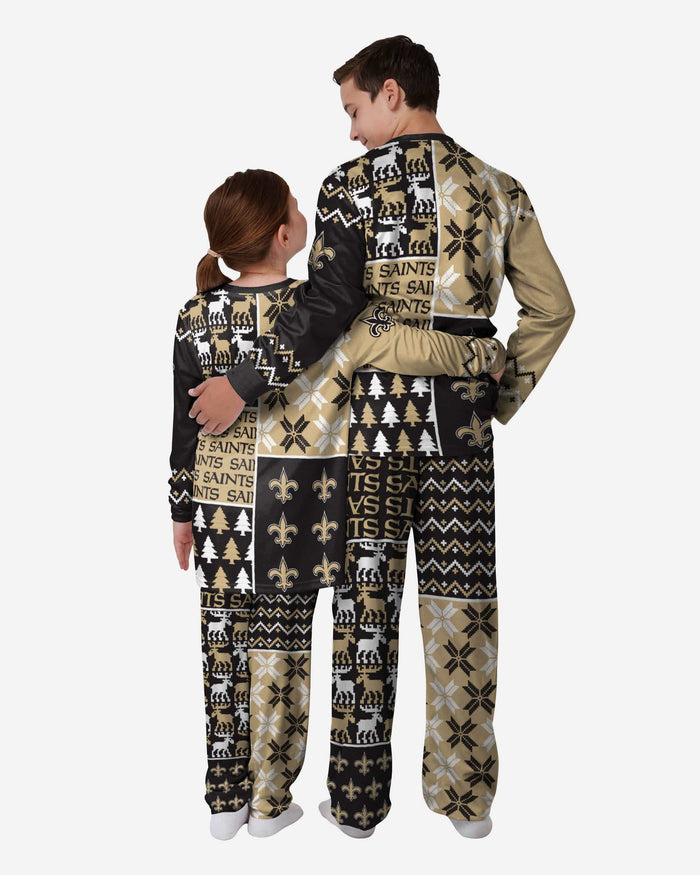 New Orleans Saints Youth Busy Block Family Holiday Pajamas FOCO 4 - FOCO.com
